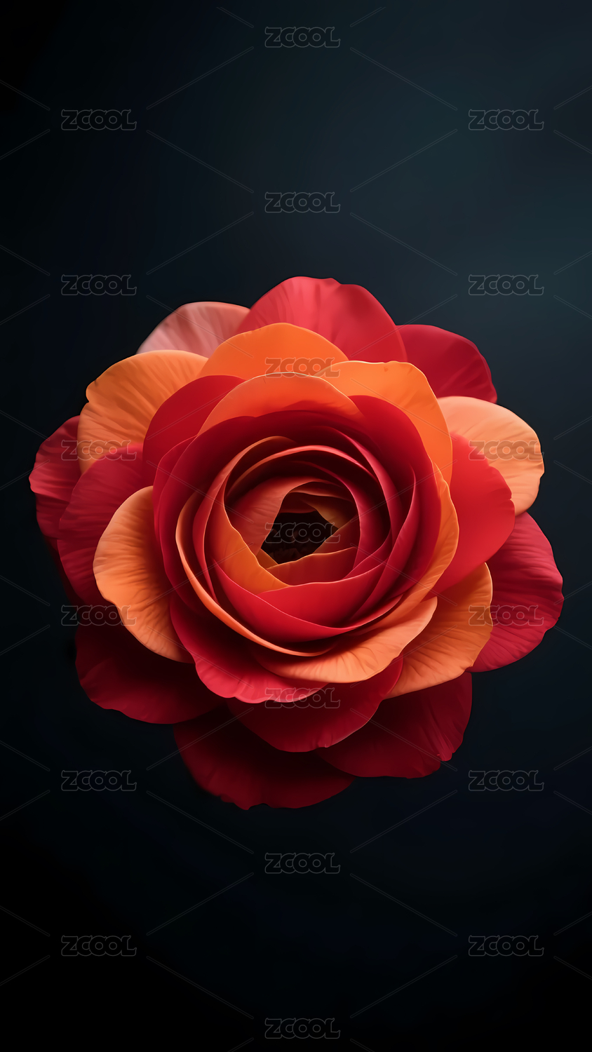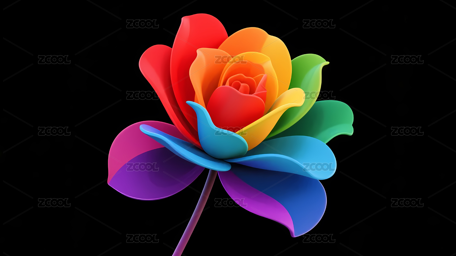 彩虹玫瑰花与黑色背景的鲜艳效果