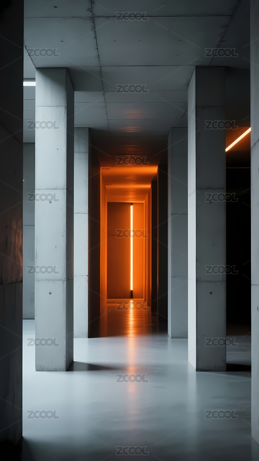 白色,灯光,橙色,层次,墙面,走廊,灰色,对称,冷色调,空间