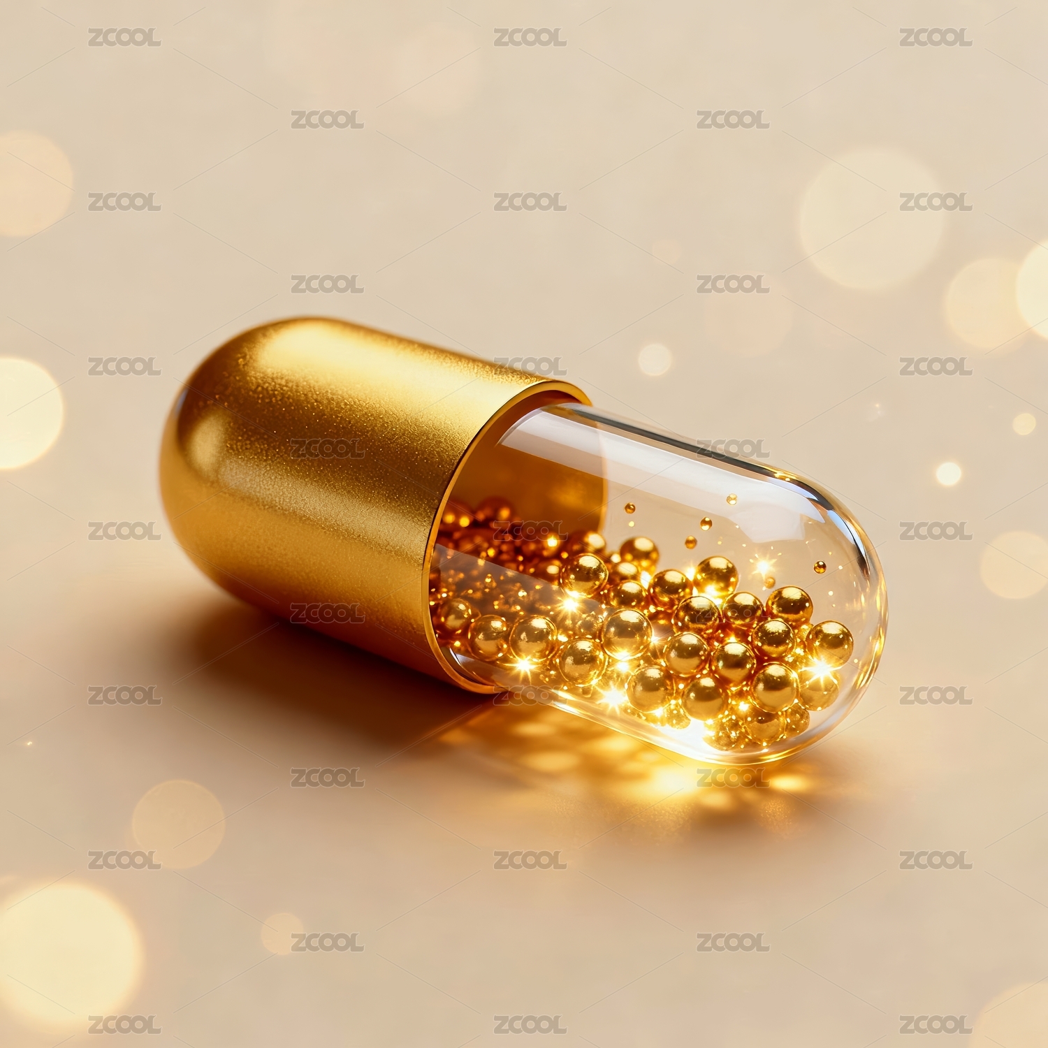 奢华金色颗粒半透明胶囊产品特写