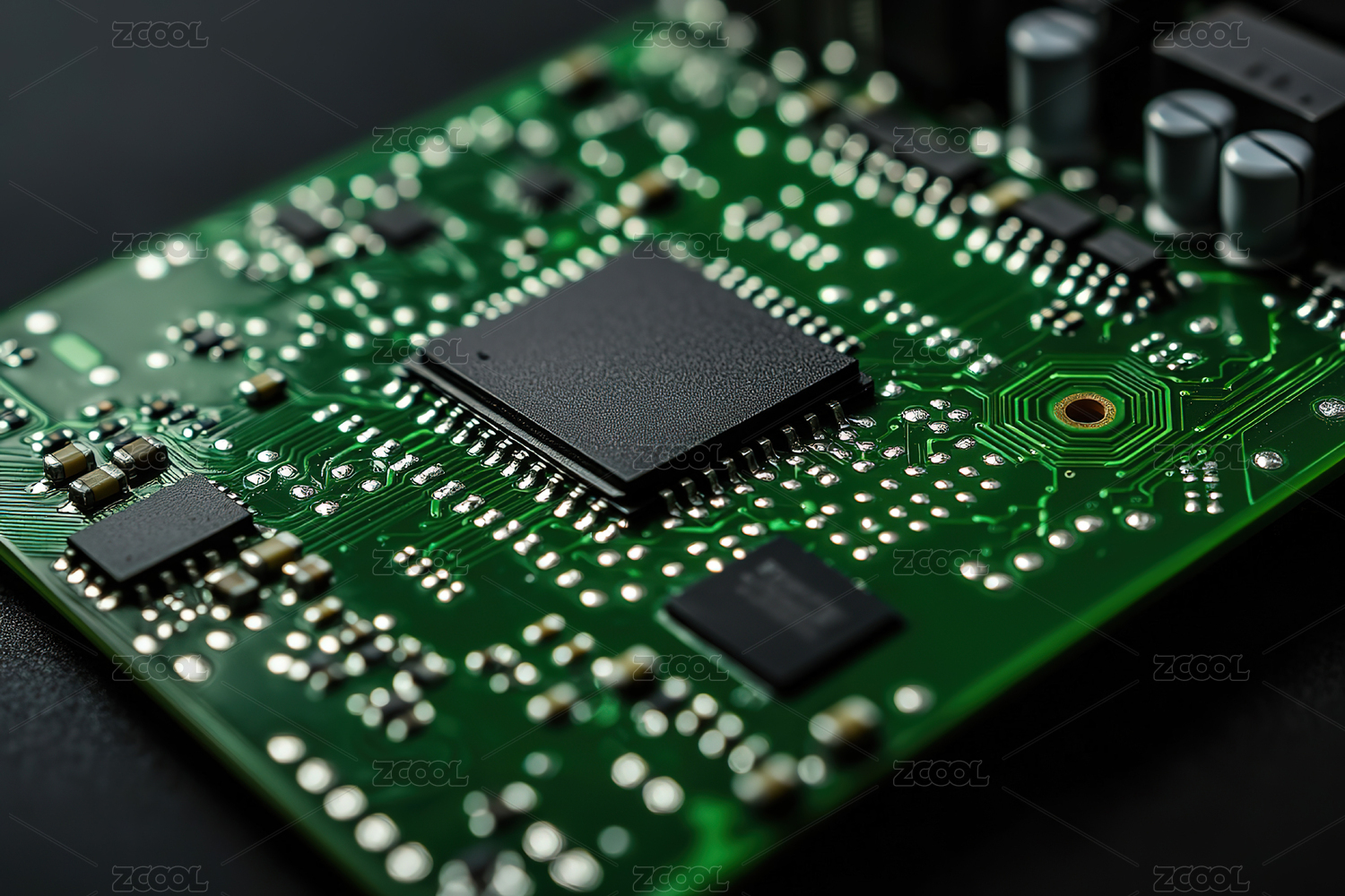 科技,金色,深色,电路板,绿色,线路,细节,元件,精密,电子