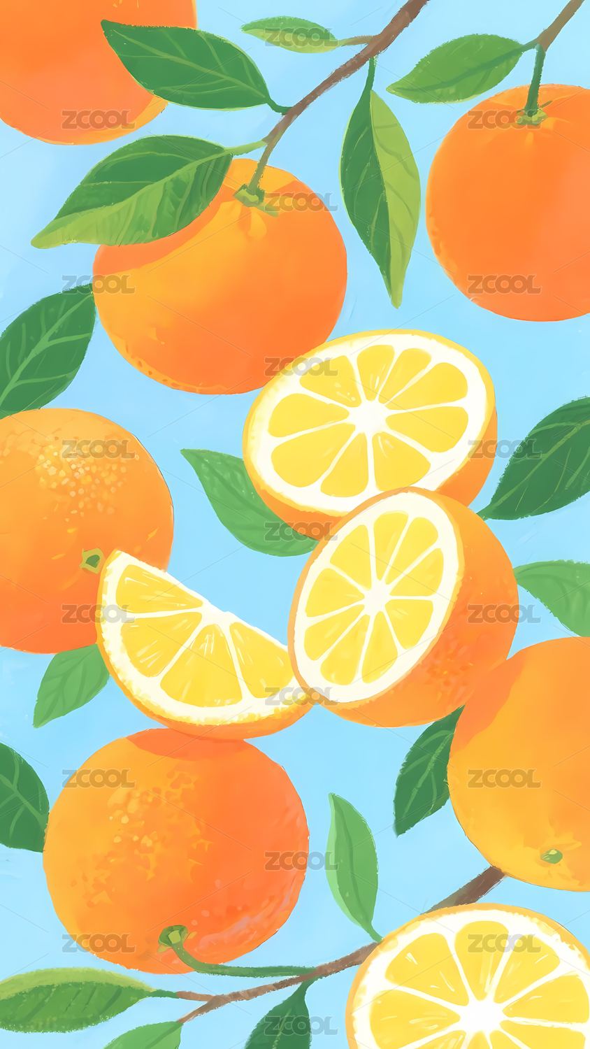 自然,橙子,水果,清新,静物,鲜亮,细节,绿叶,树枝,果肉