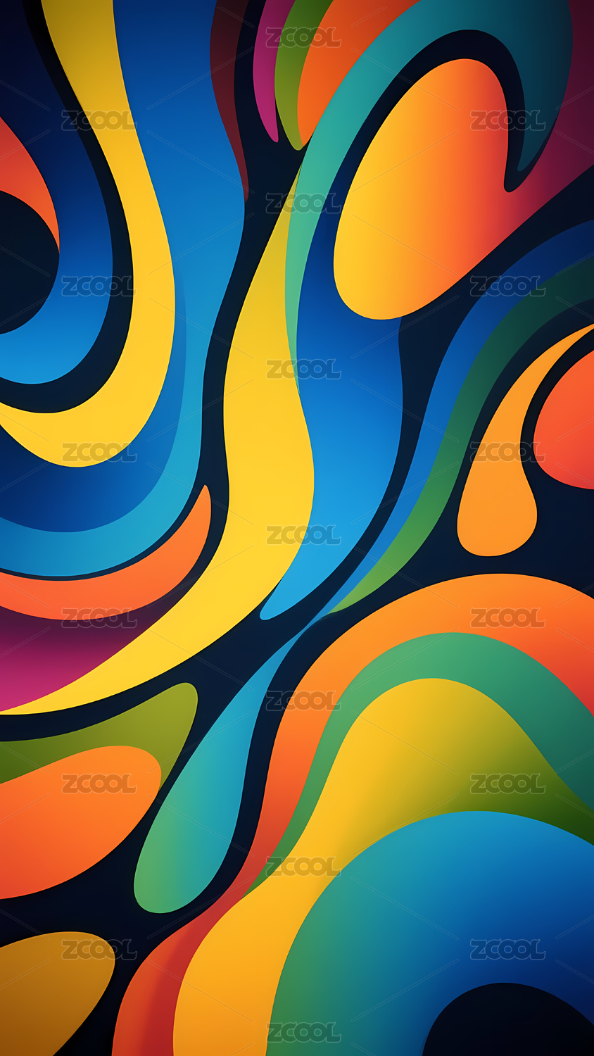 蓝色,紫色,线条,波浪,动感,黄色,橙色,红色,绿色,深黑
