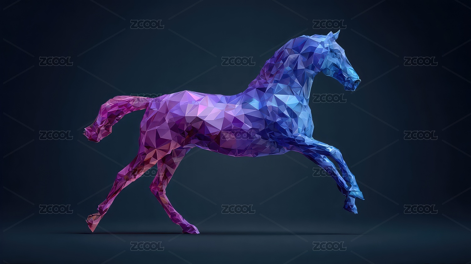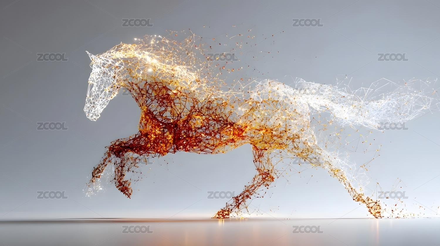光影,立体,几何,现代,设计,创意,发光,红色,金色,马匹