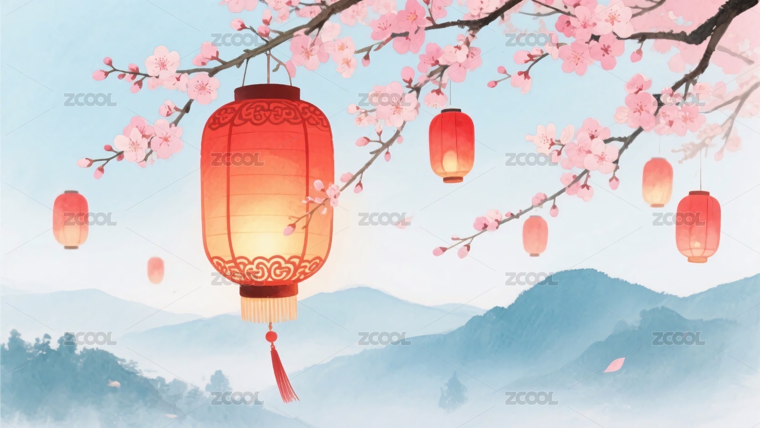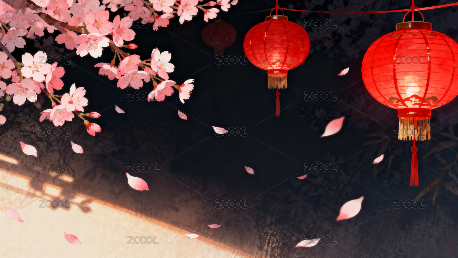 灯笼,装饰,节日,传统,背景,光亮,静谧,光影,悬挂,花瓣