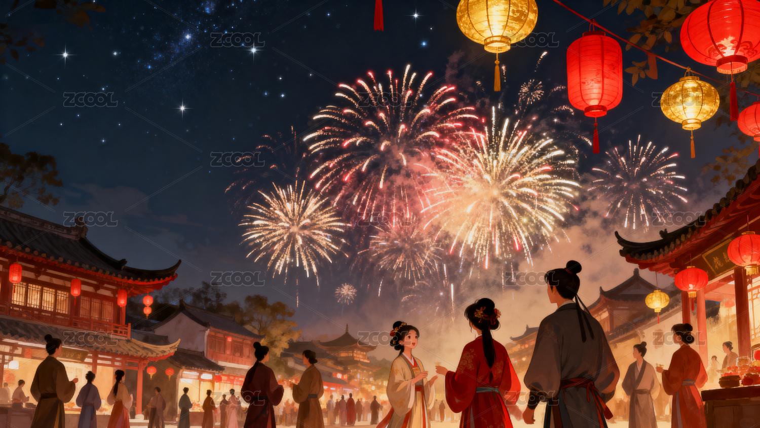 红色,装饰,服饰,喜庆,传统,人物,灯笼,建筑,节日,烟花