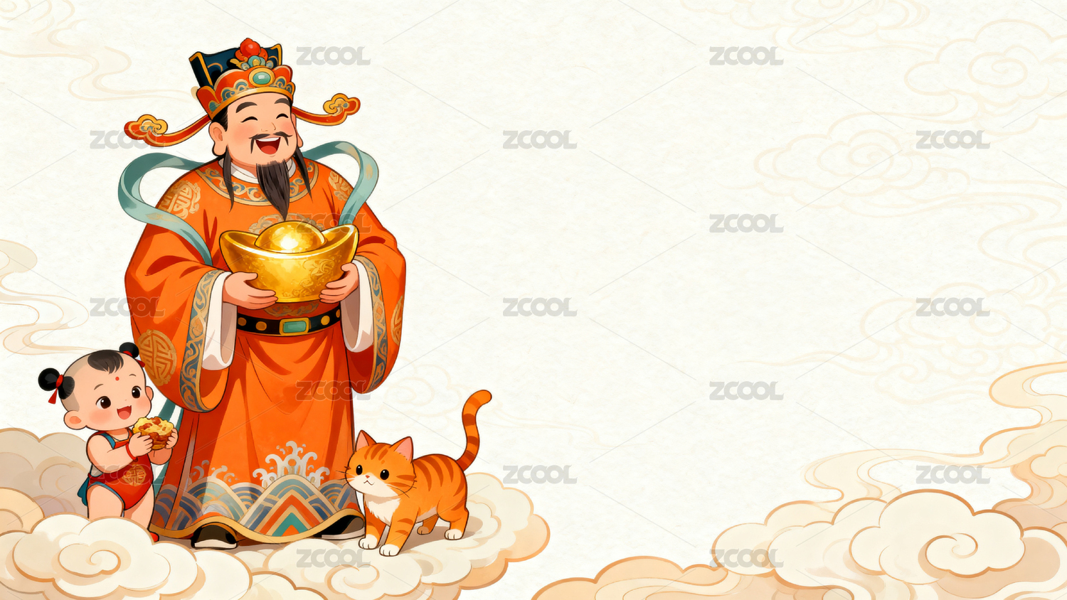 金色,财神,笑容,服饰,喜庆,传统,文化,吉祥,福气,图案