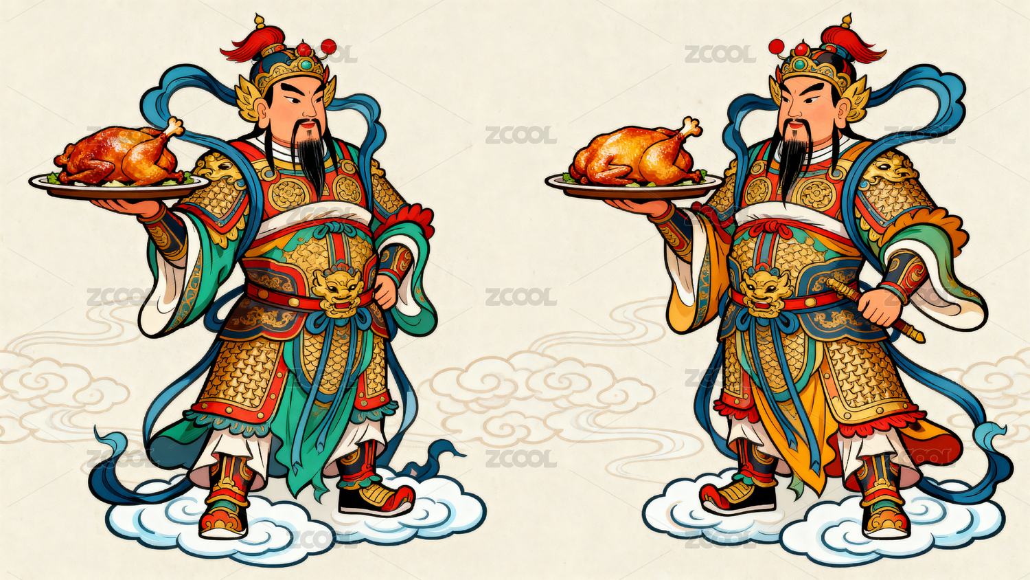 古代神祇手持烤鸡形象鲜明