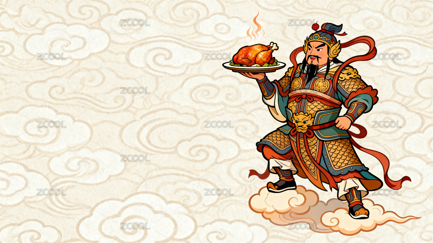 古代武士手持烤鸡云中立