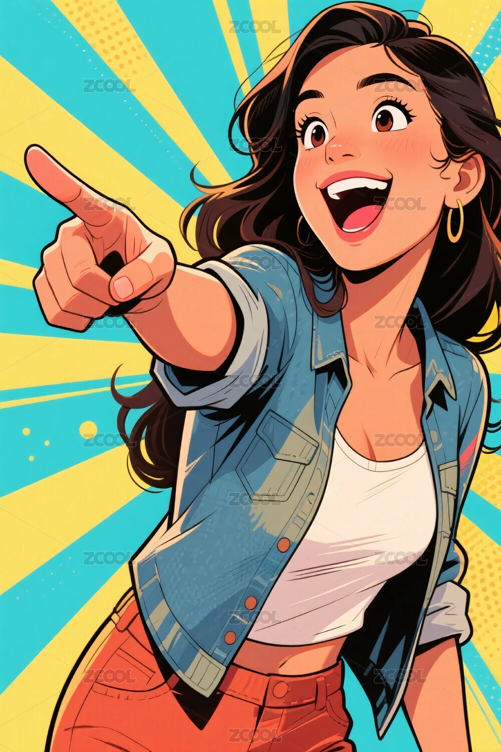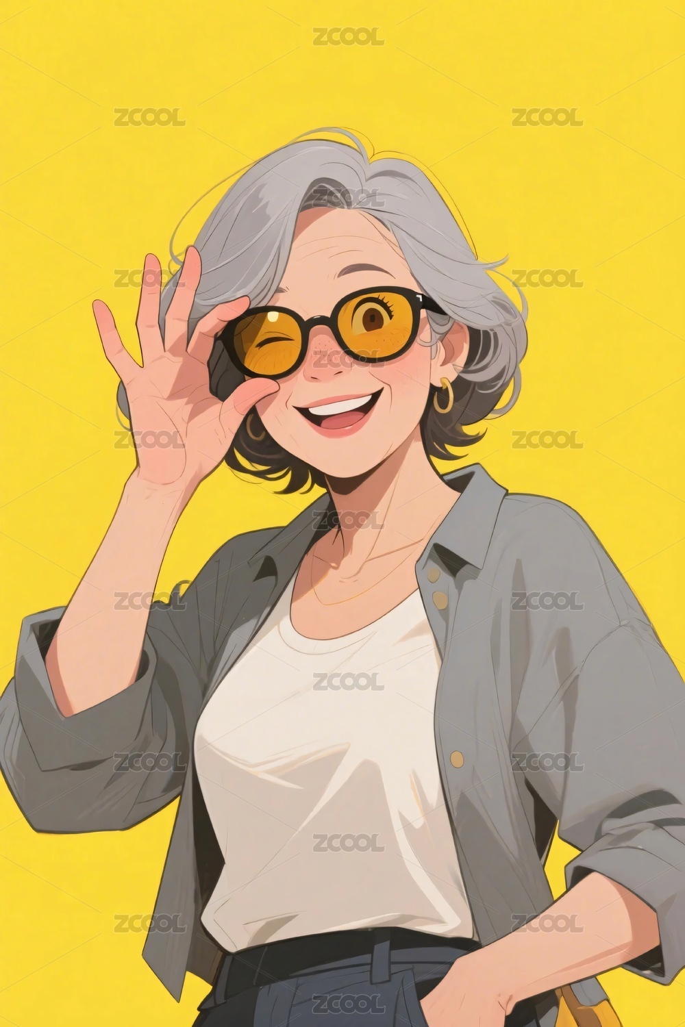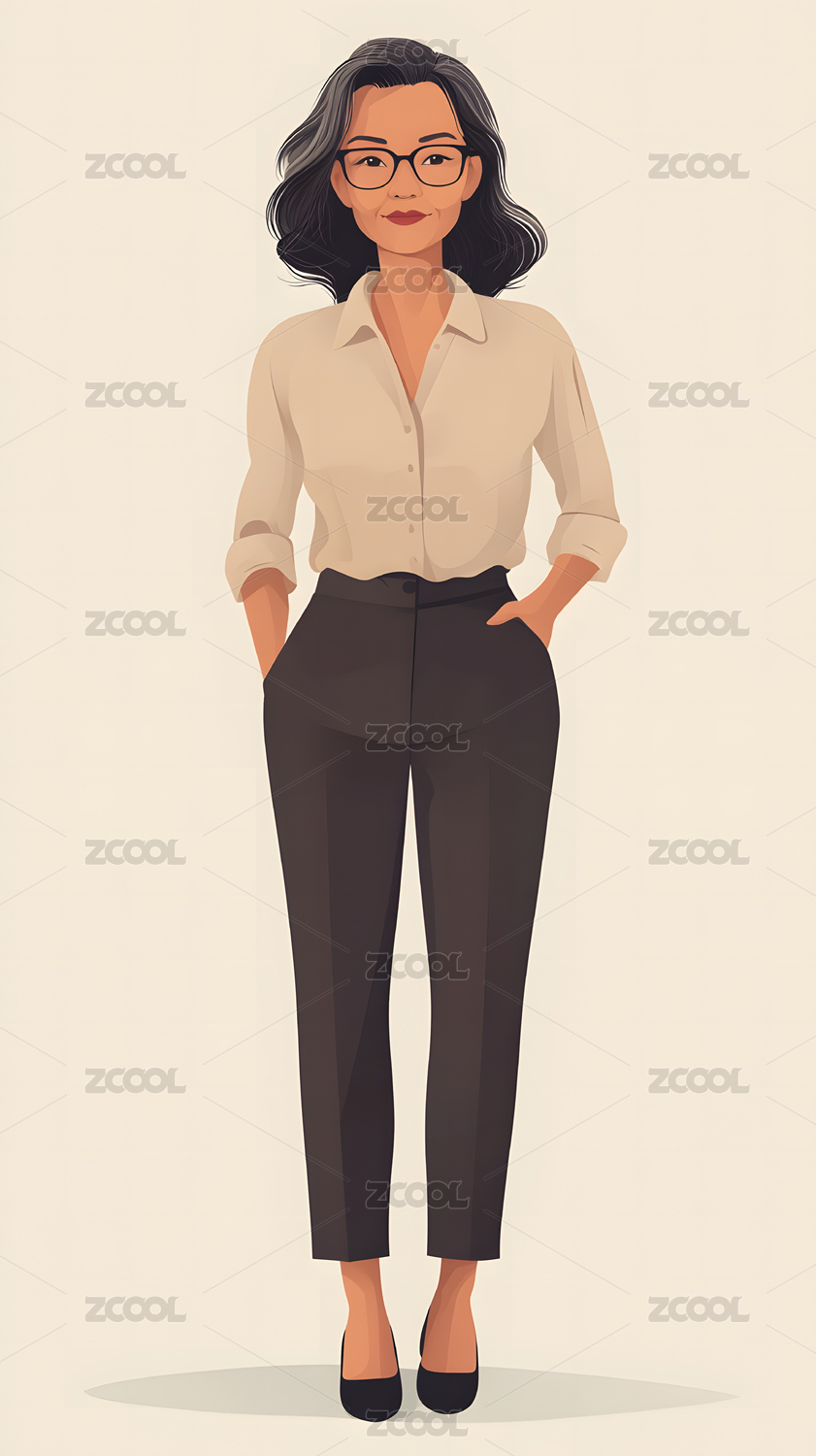 女性,插画,手绘,卡通,人物,黄色,背景,衬衫,T恤,裤子