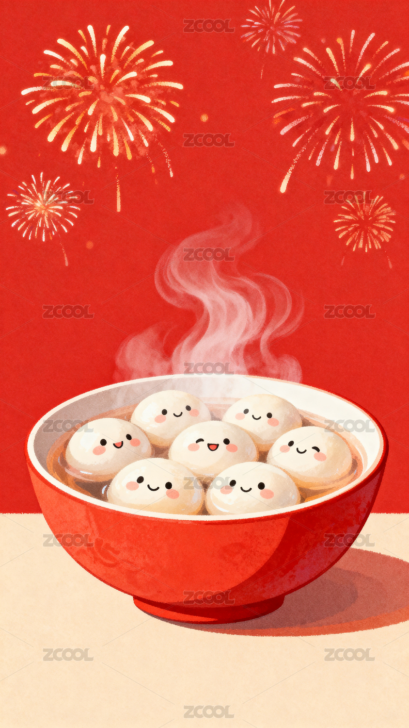 元宵节汤圆与烟花庆祝