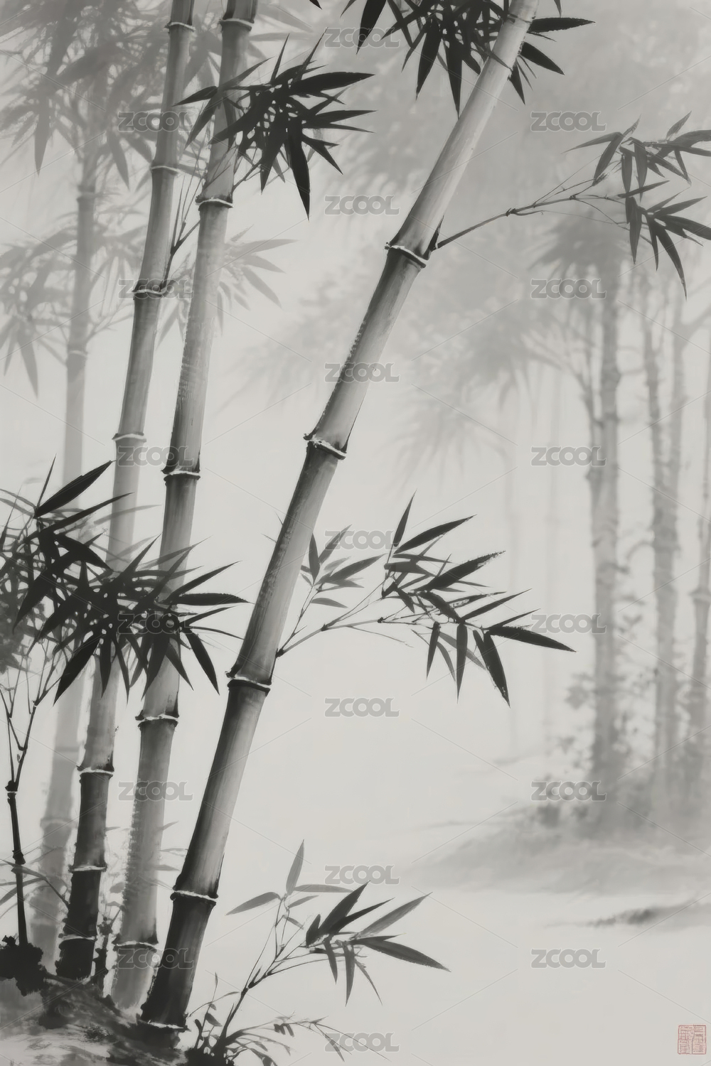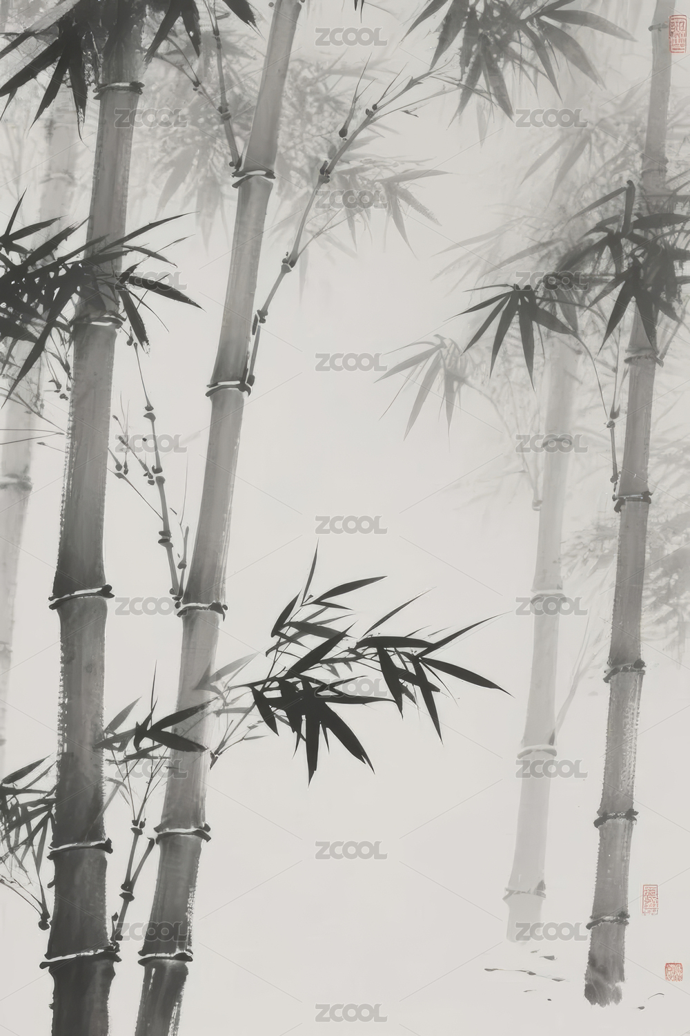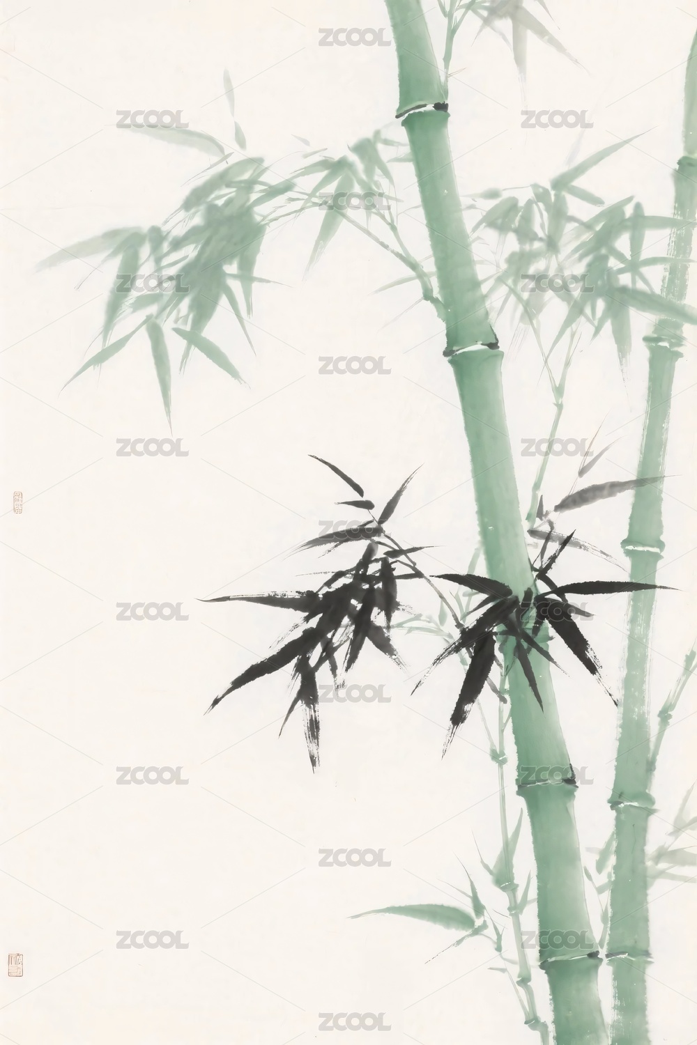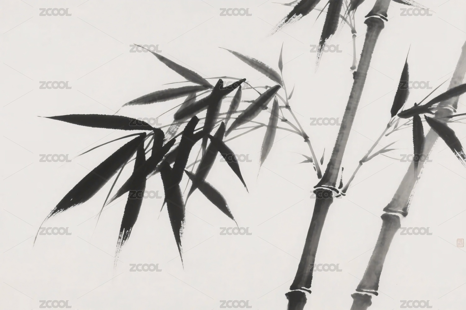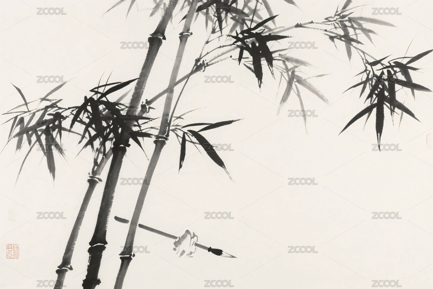 竹子,小鸟,水墨,山水,鸟类,枝叶,中国画,风景,水墨画,艺术