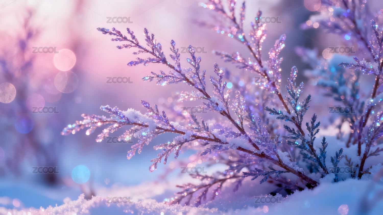 冰晶树枝的梦幻光影