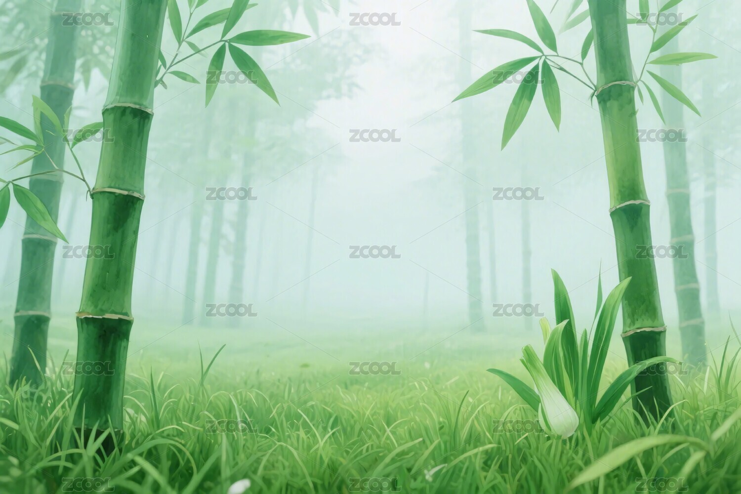 清新风格自然户外竹林插画背景壁纸
