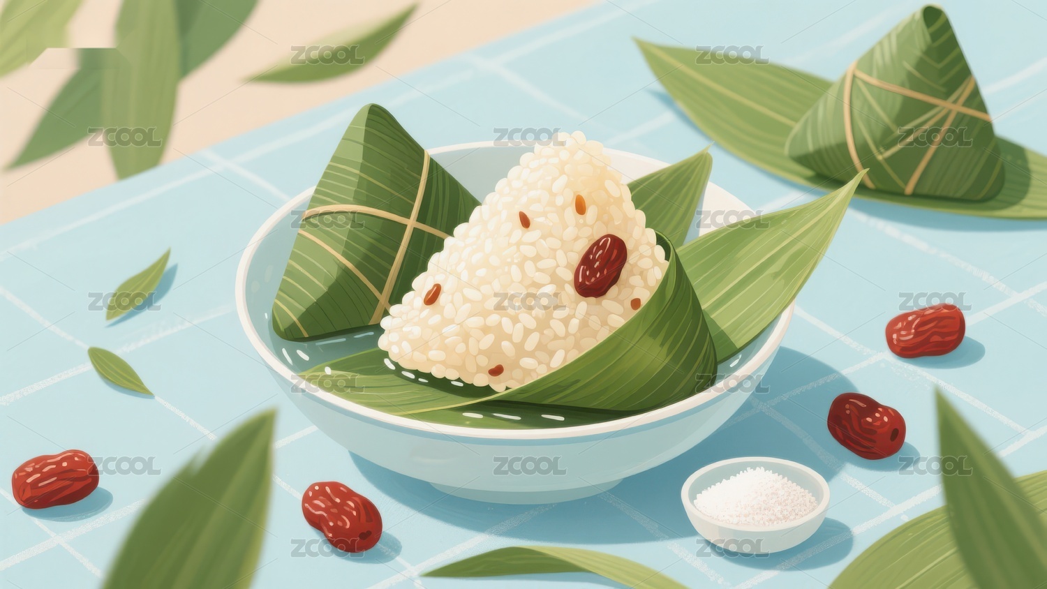 粽叶粽子插画