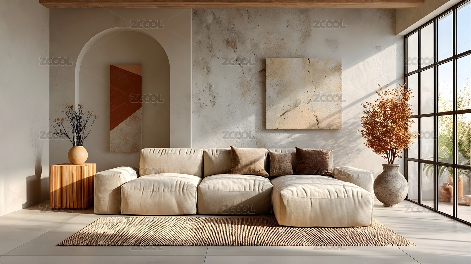 米色客厅暖光休憩场景