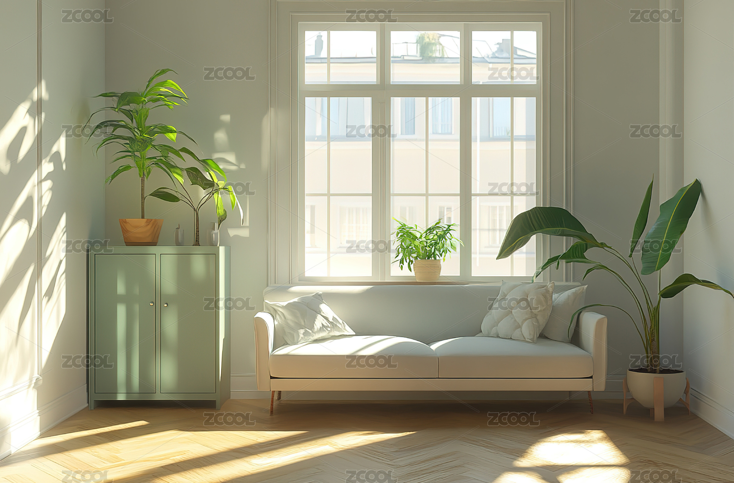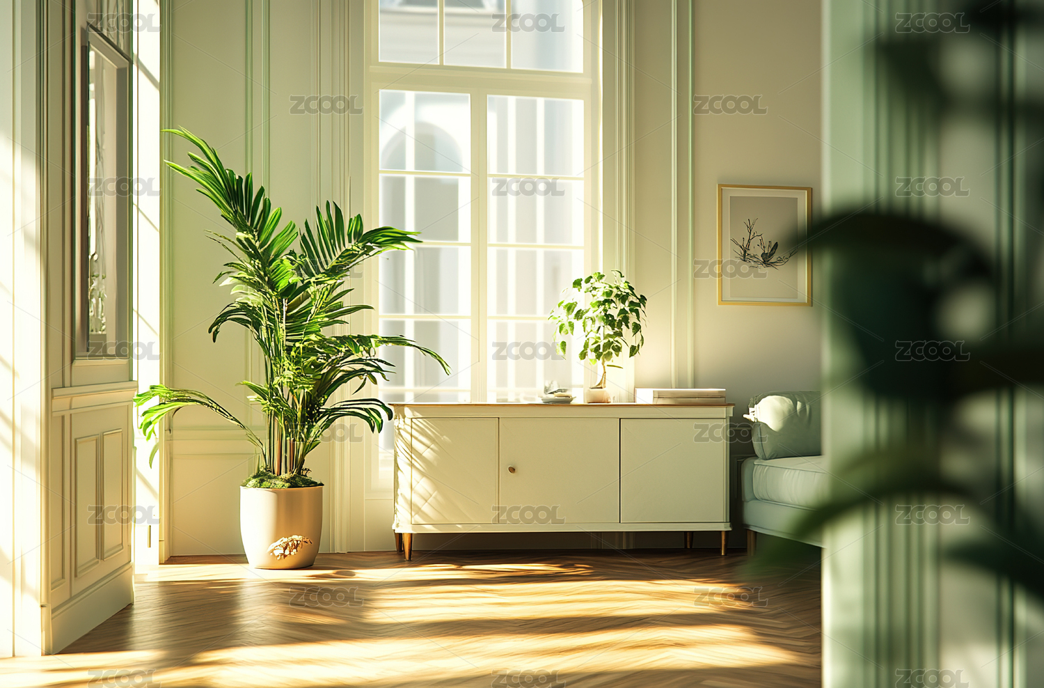 角落,室内,柜子,白色,画作,抽象,墙面,盆栽,植物,绿色