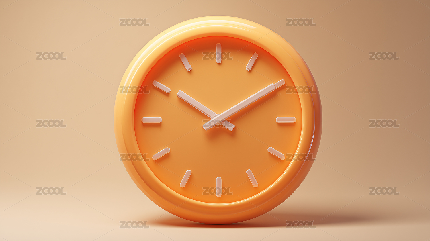 时钟,圆形,橙色,橡胶,质感,设计,极简,光线,温暖,概念