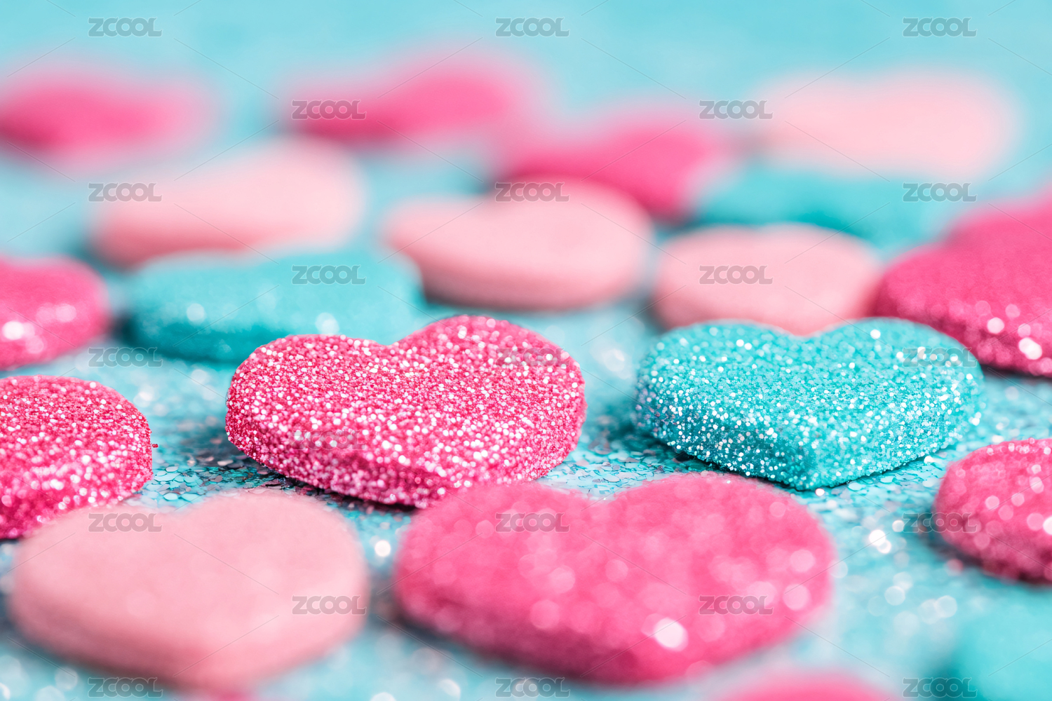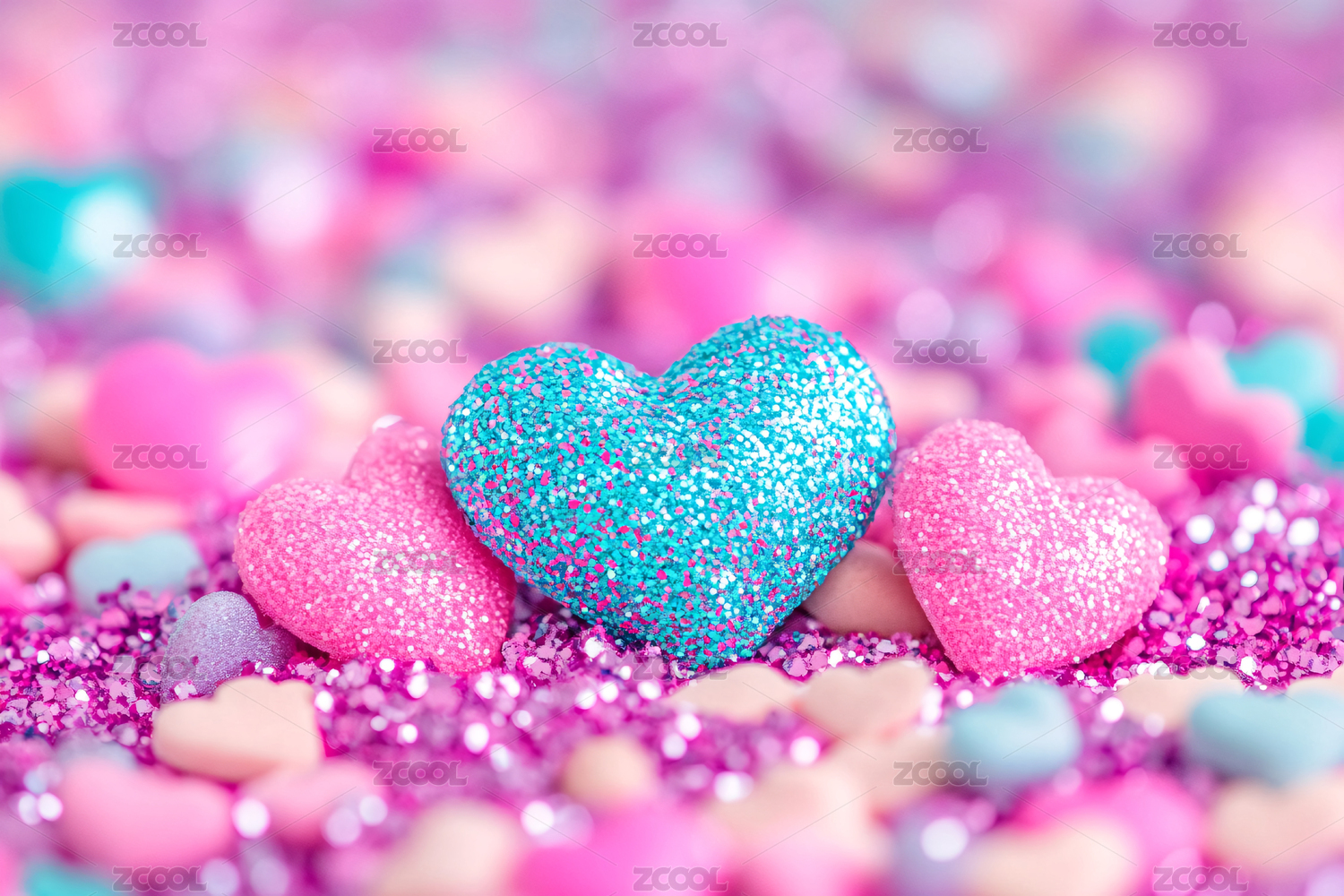 粉色闪光爱心与众多心形物