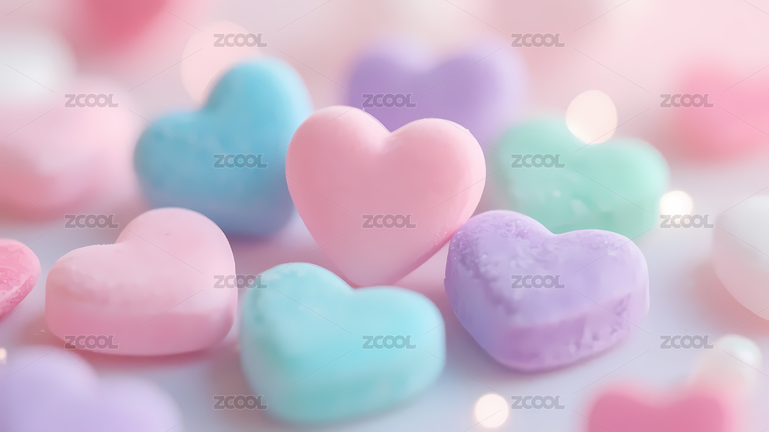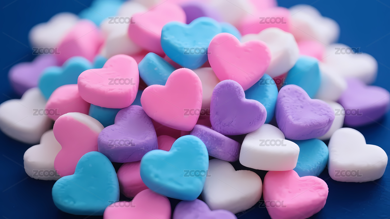 梦幻粉蓝紫心形糖果