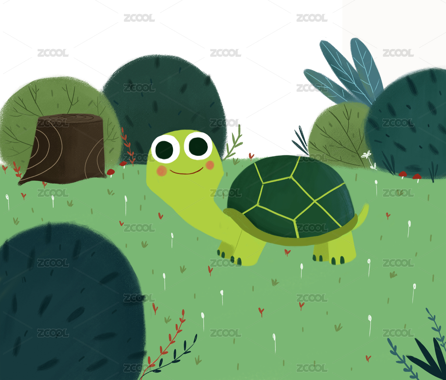 卡通乌龟,插画,竹子,可爱,睡觉,绿色,卡通,竹林,自然,矢量
