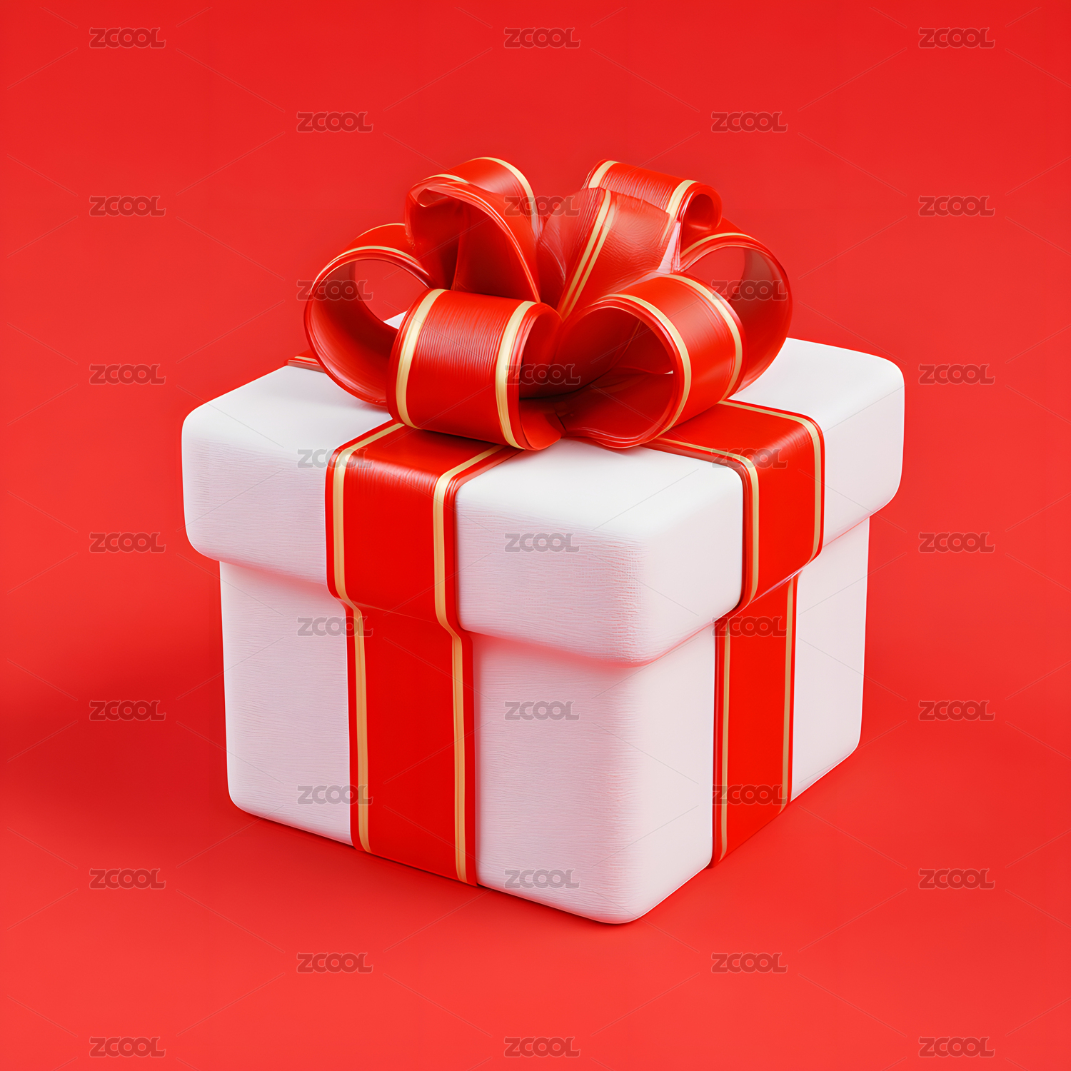 3D红色缎带蝴蝶结礼盒