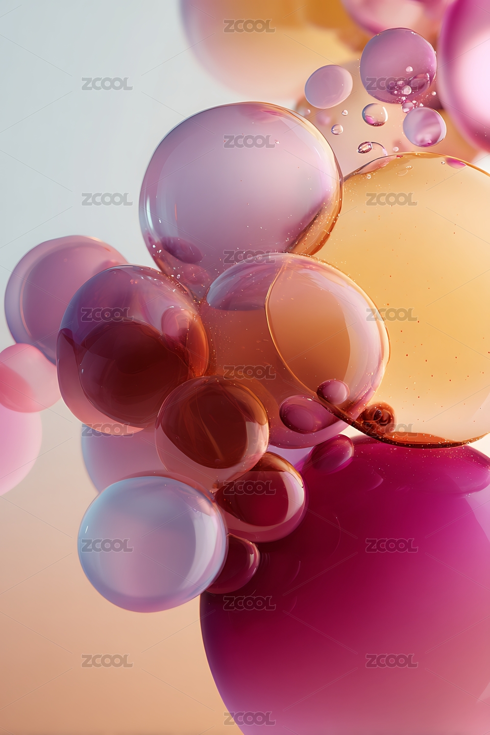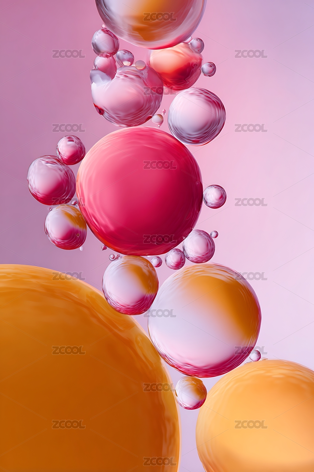 橙色液体气泡在光线下漂浮
