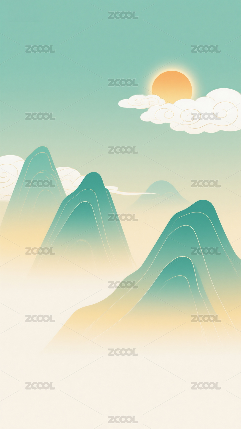 中国风,国风,简约,背景,装饰,新中式,山脉,山峰,渐变,轮廓