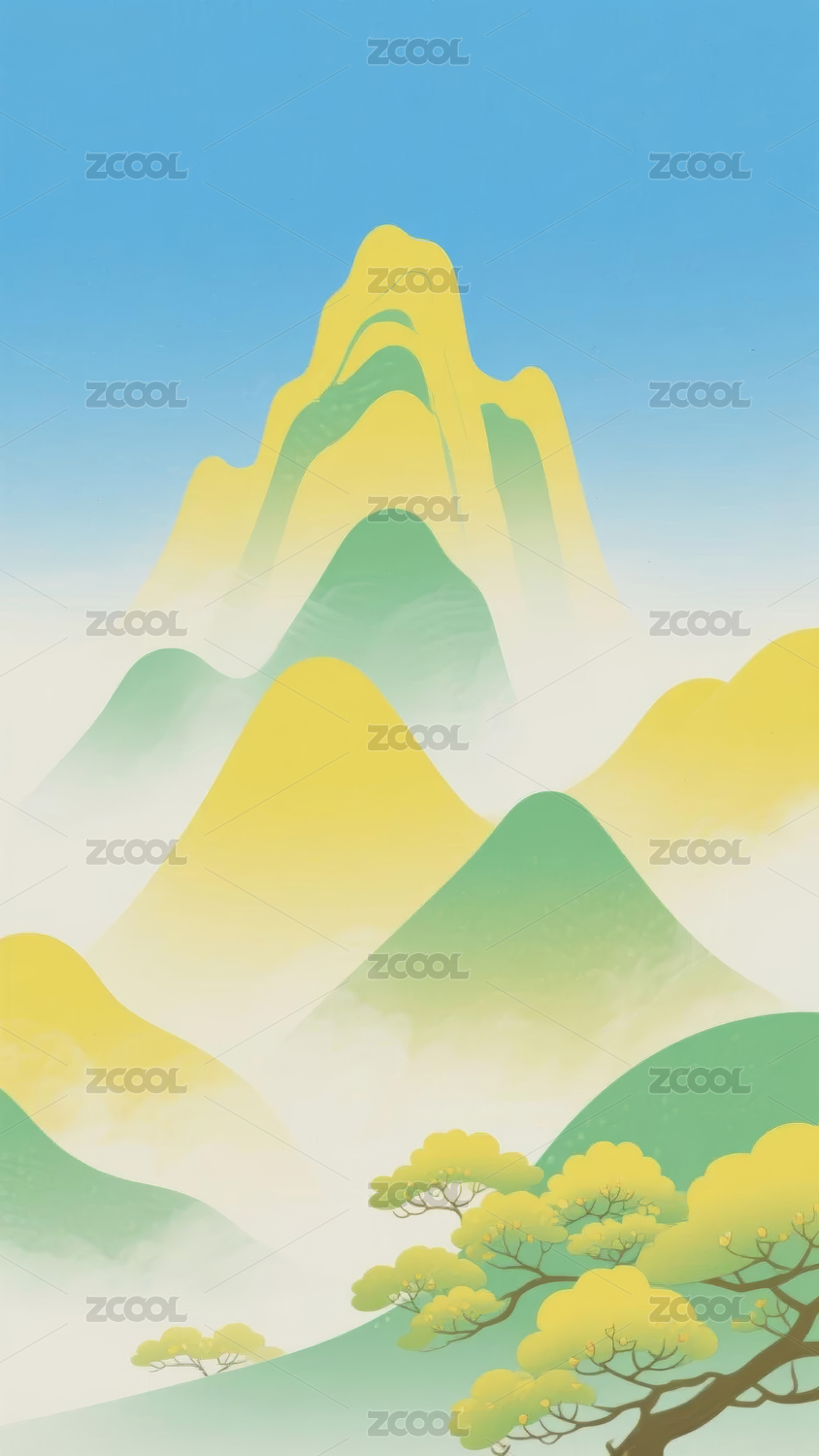 山水背景风景插画