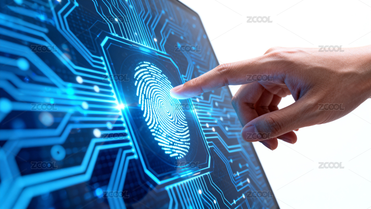 手指触碰指纹识别科技界面