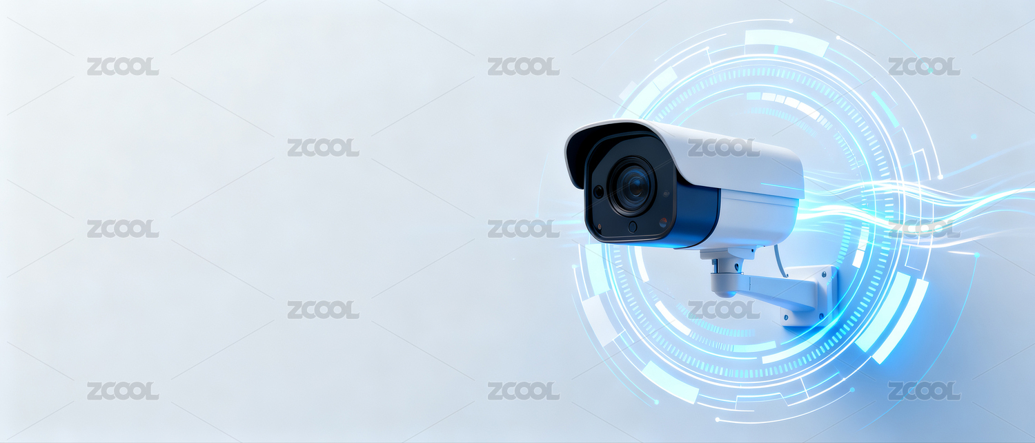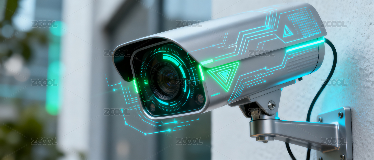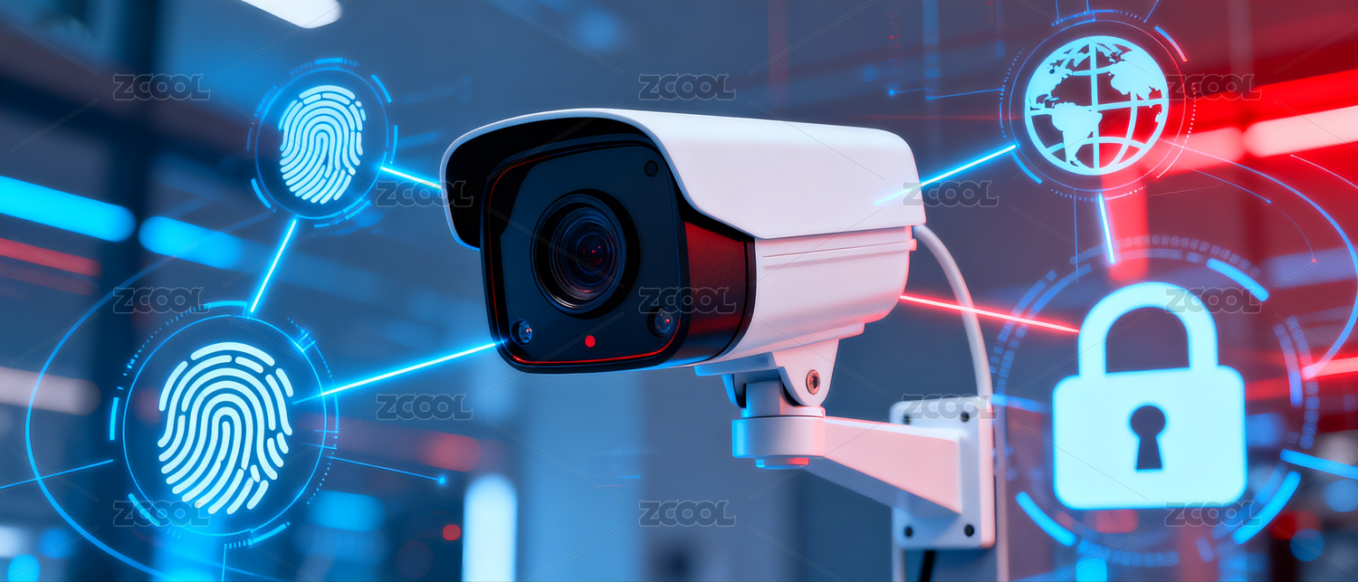 智能监控摄像头特写与数字化界面叠加