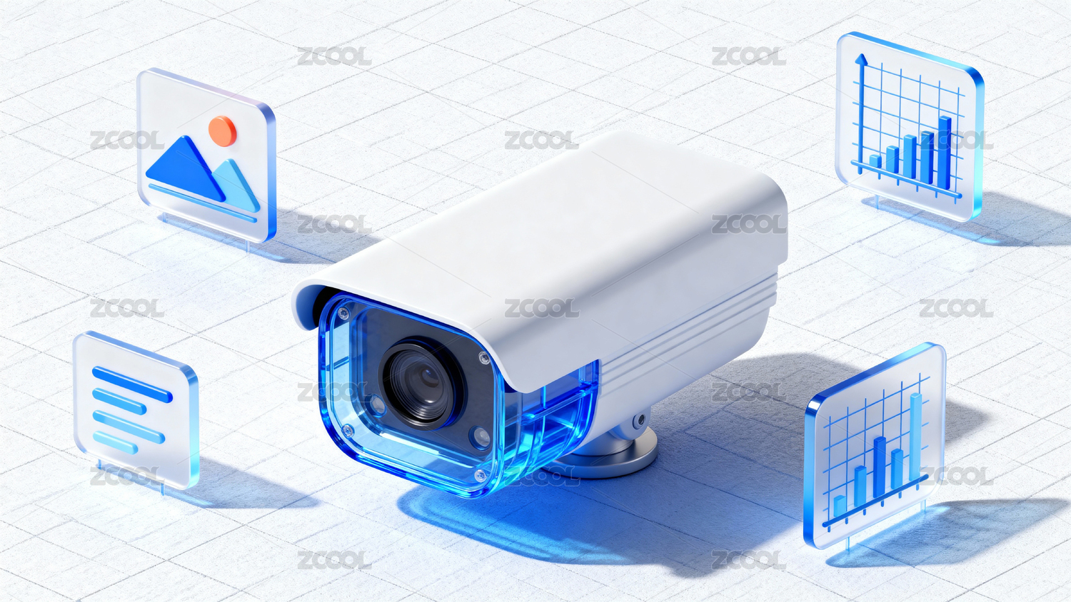 科技感监控摄像头与数据图标