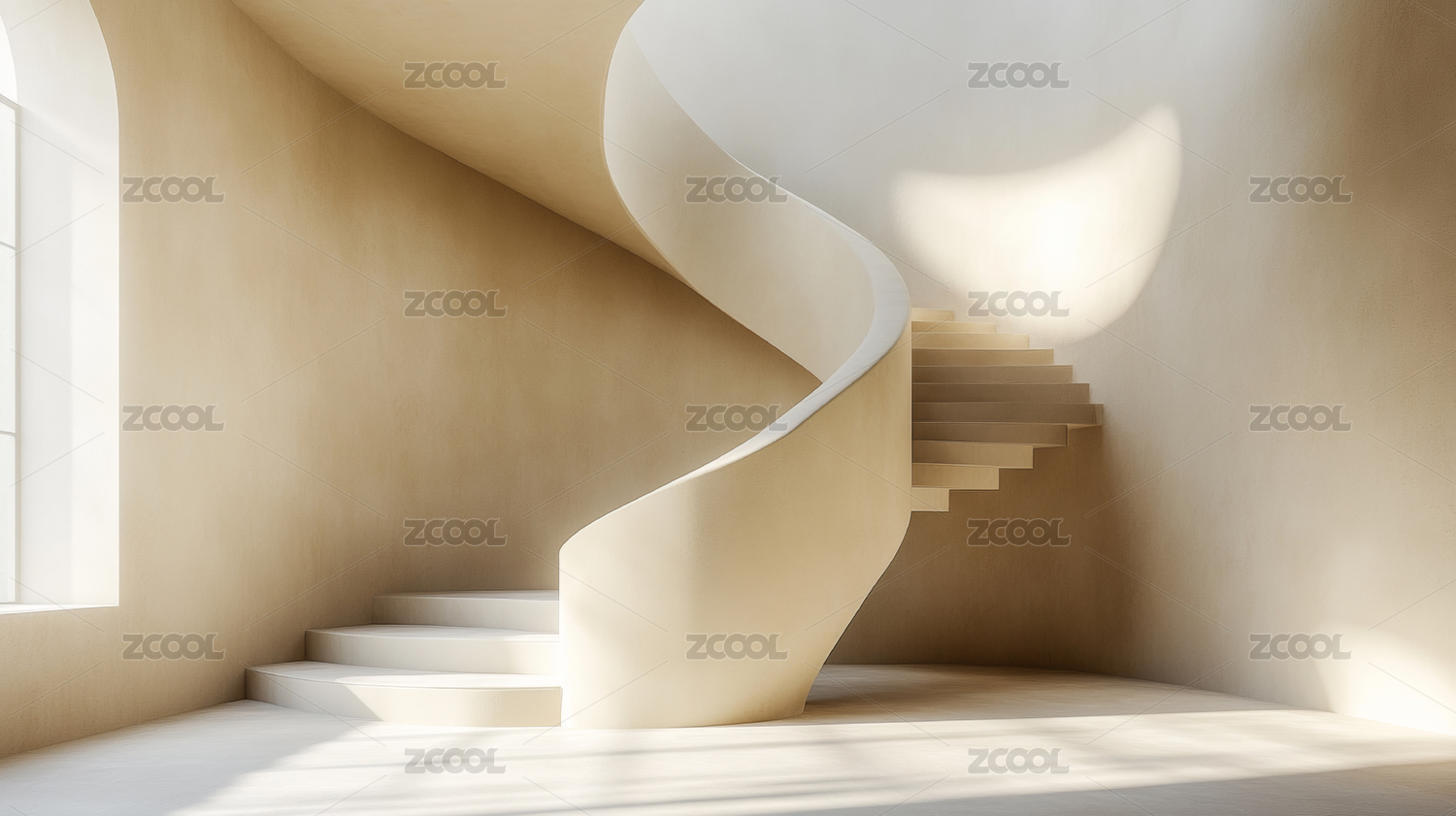 3D现代简约旋转楼梯三维空间场景
