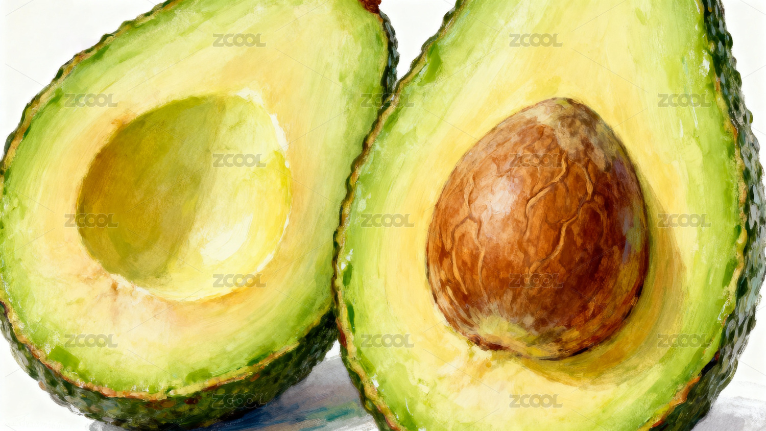 牛油果切面水彩画