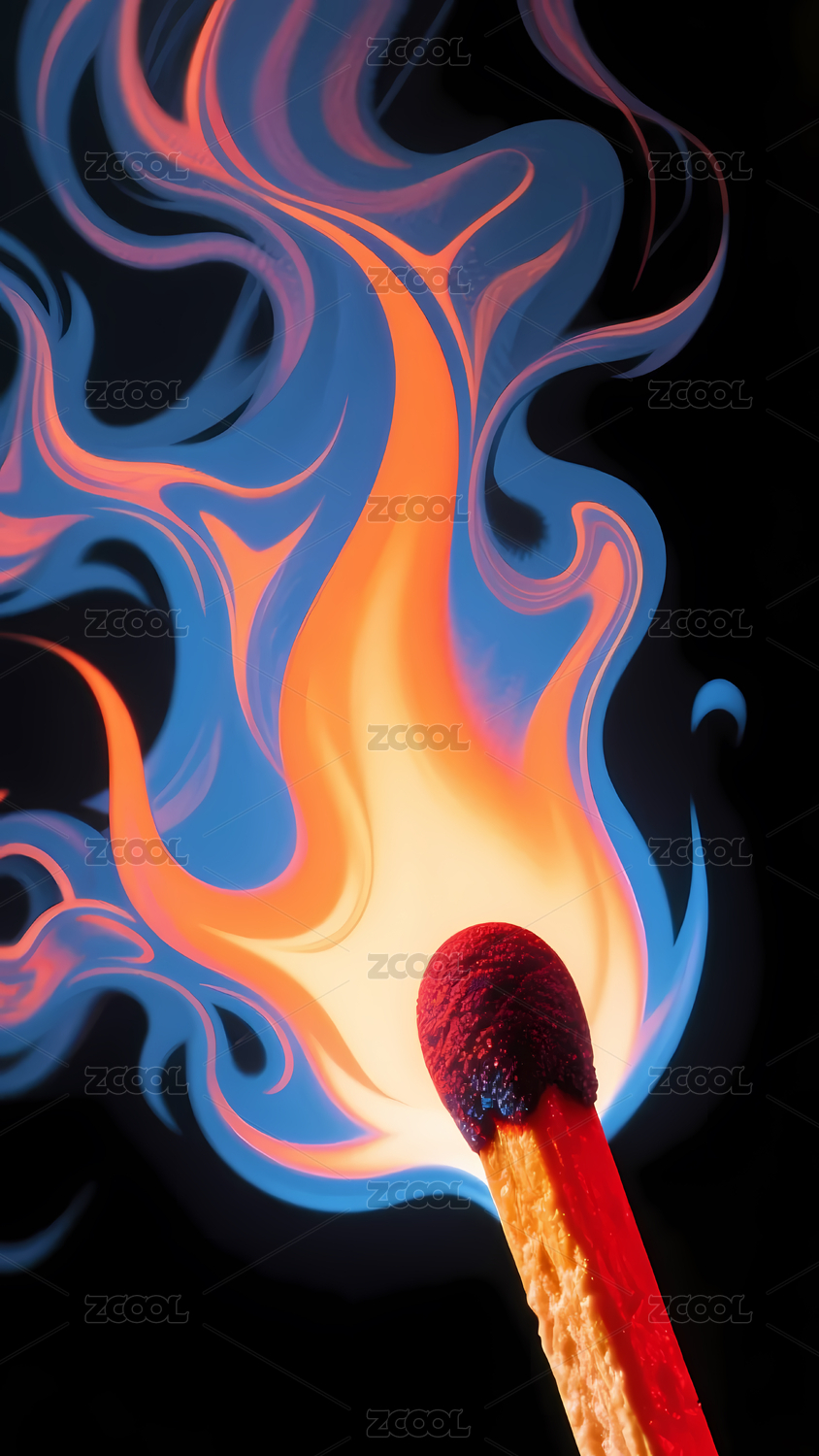 蓝色,鲜艳,渐变,黑色,红色,火柴,火焰,燃烧,橙黄,动态