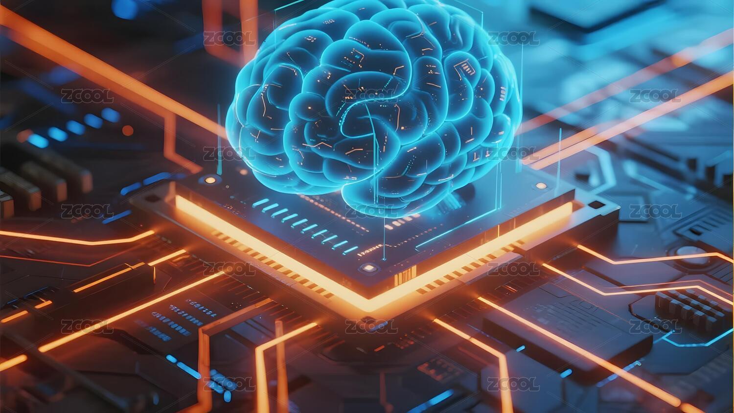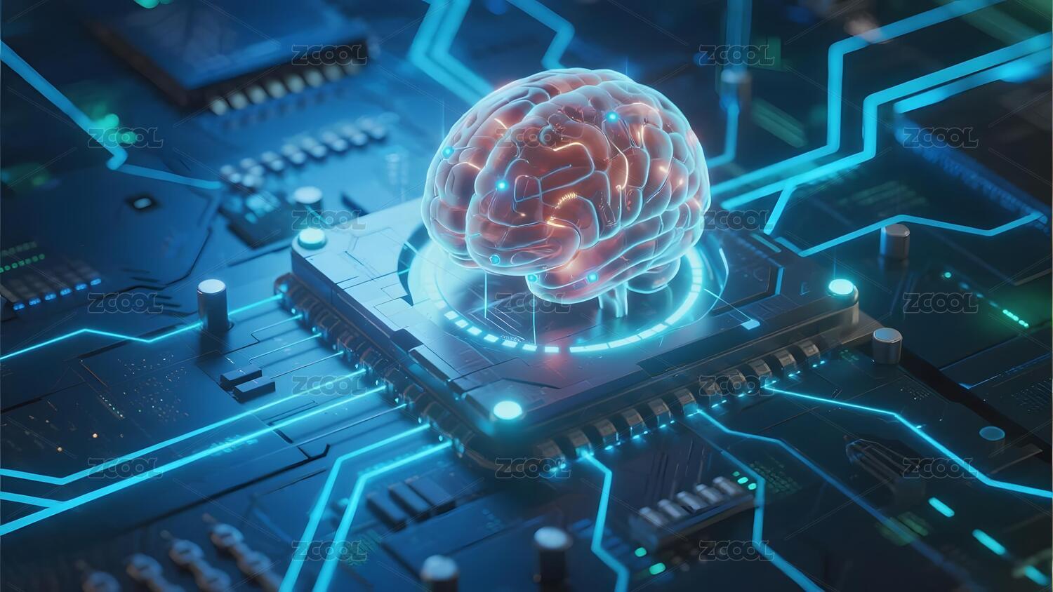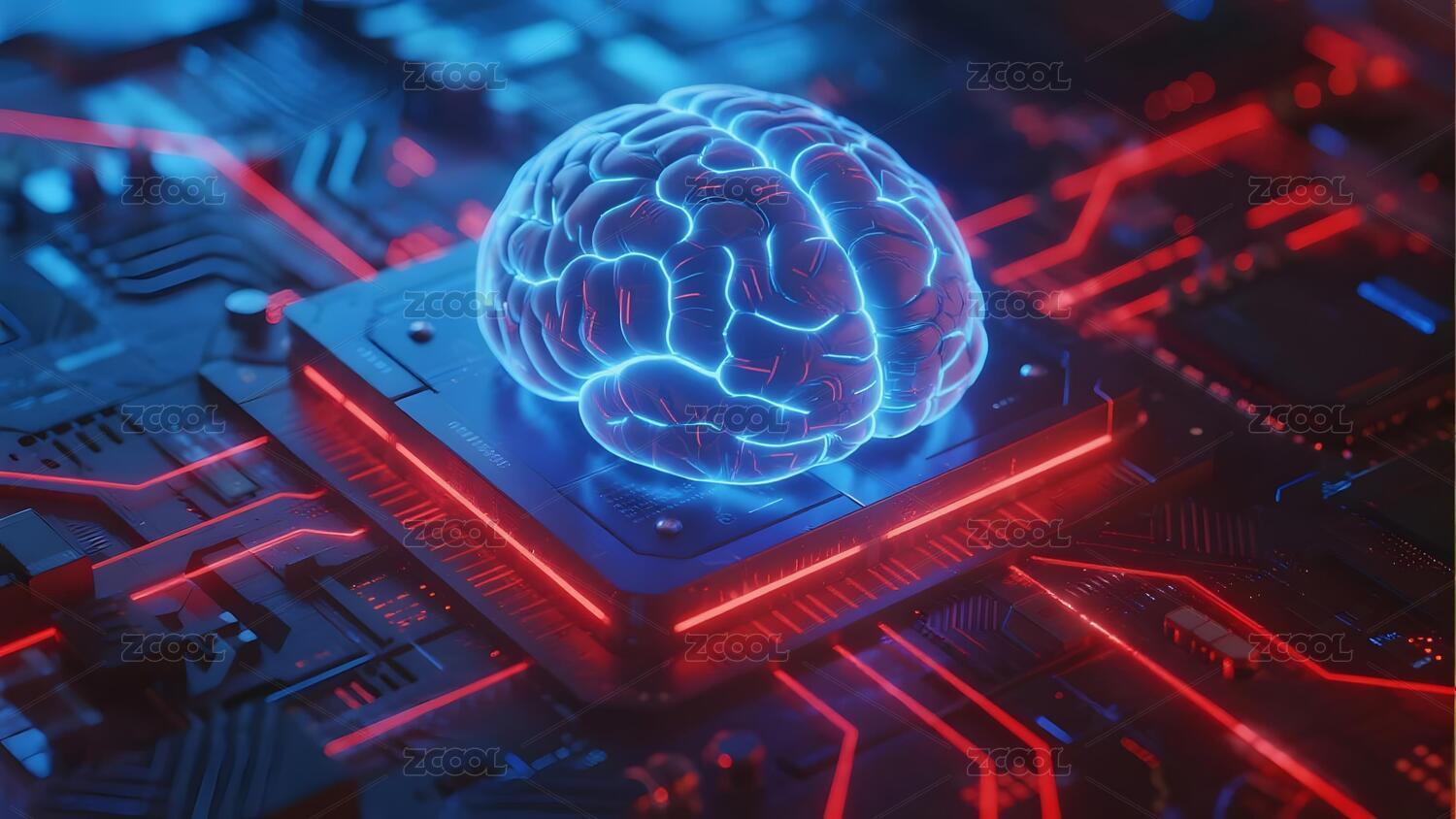 大脑,电路,芯片,科技,神经,电子,发光,红色,蓝色,未来
