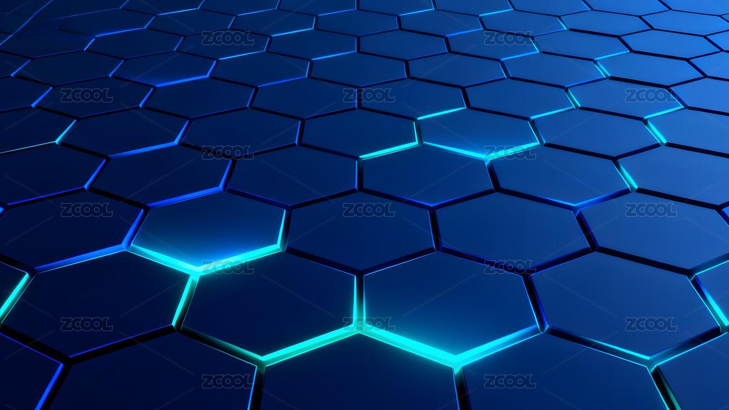 蓝色发光六边形网格背景