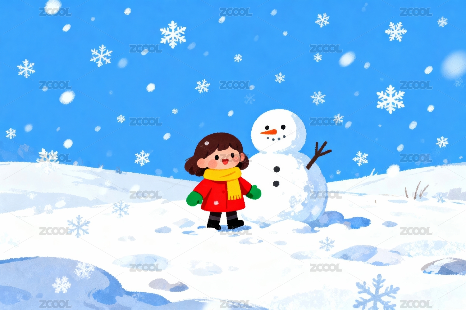 冬日雪景小女孩