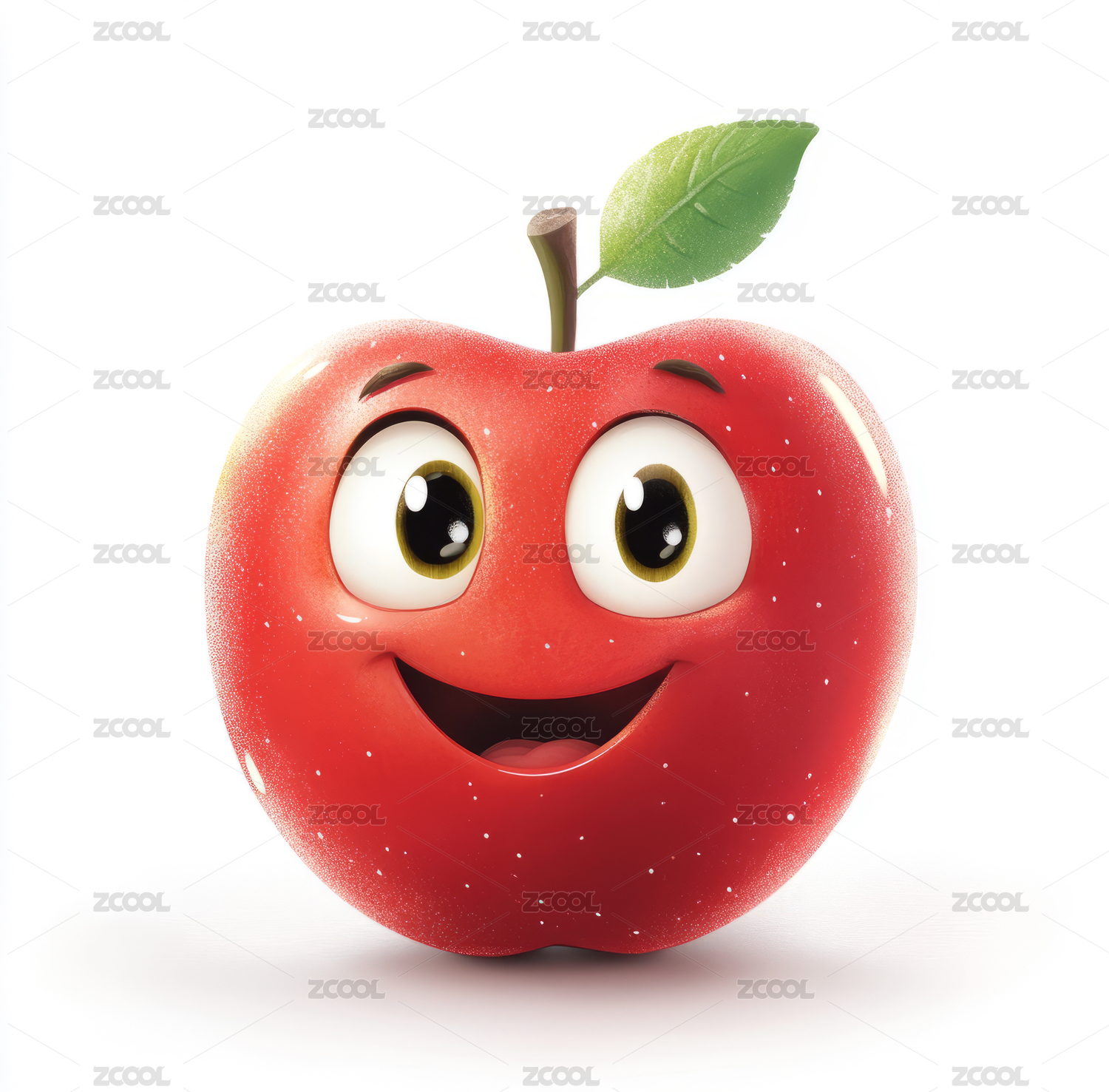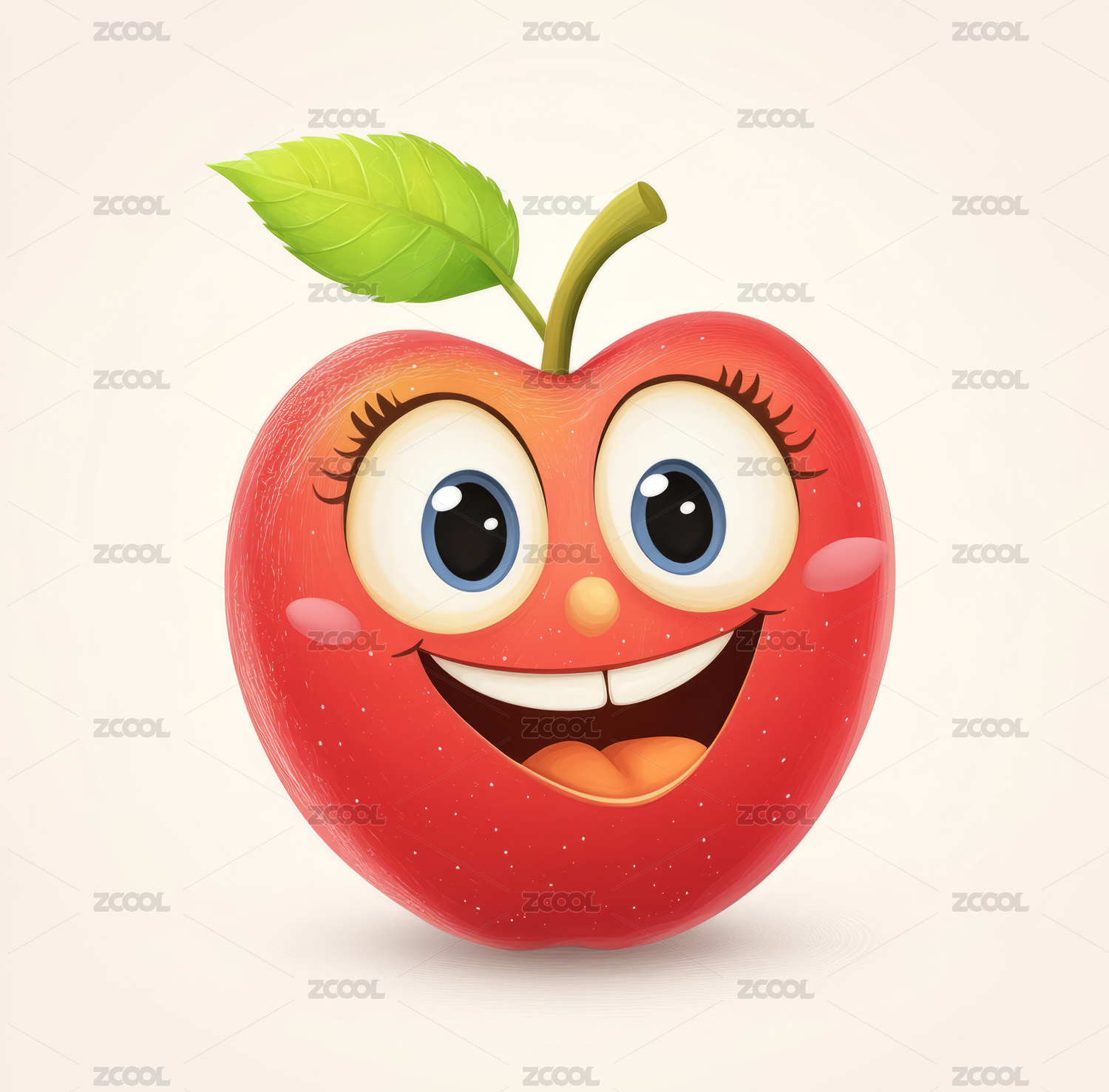 一个微笑的苹果和灿烂的微笑的卡通插图高清