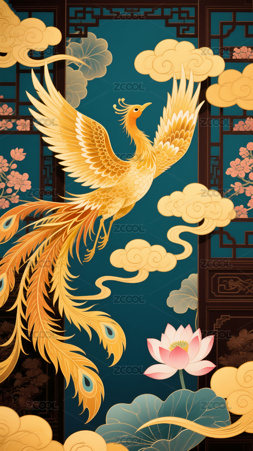 国潮古风传统中式古典吉祥菊花牡丹仙鹤底纹