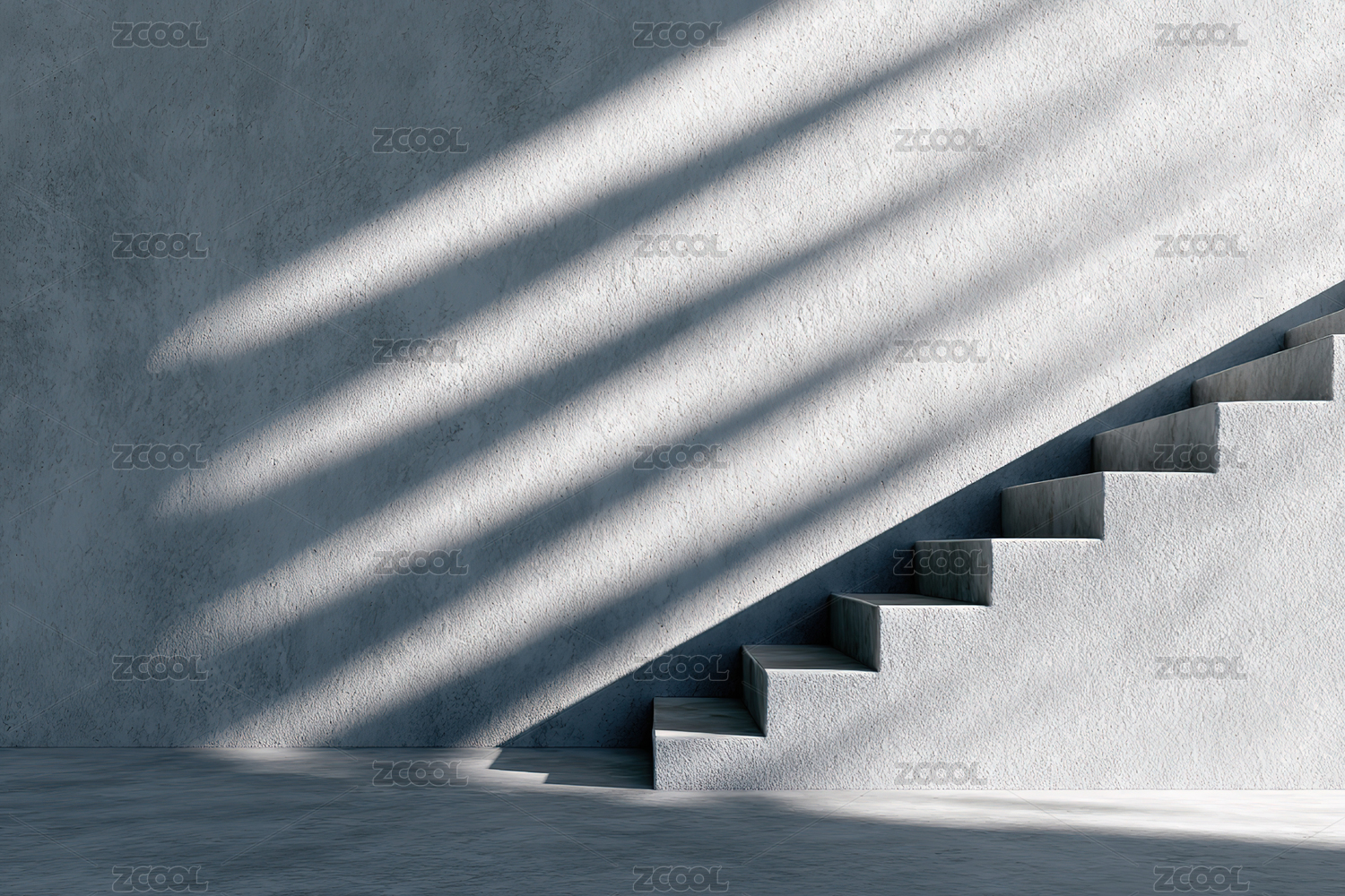 光影交错的白色楼梯空间
