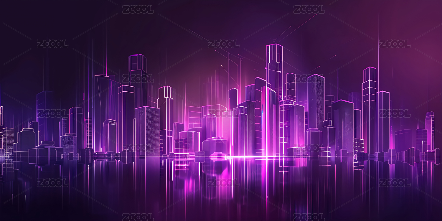 城市建筑紫色商业场景主视觉
