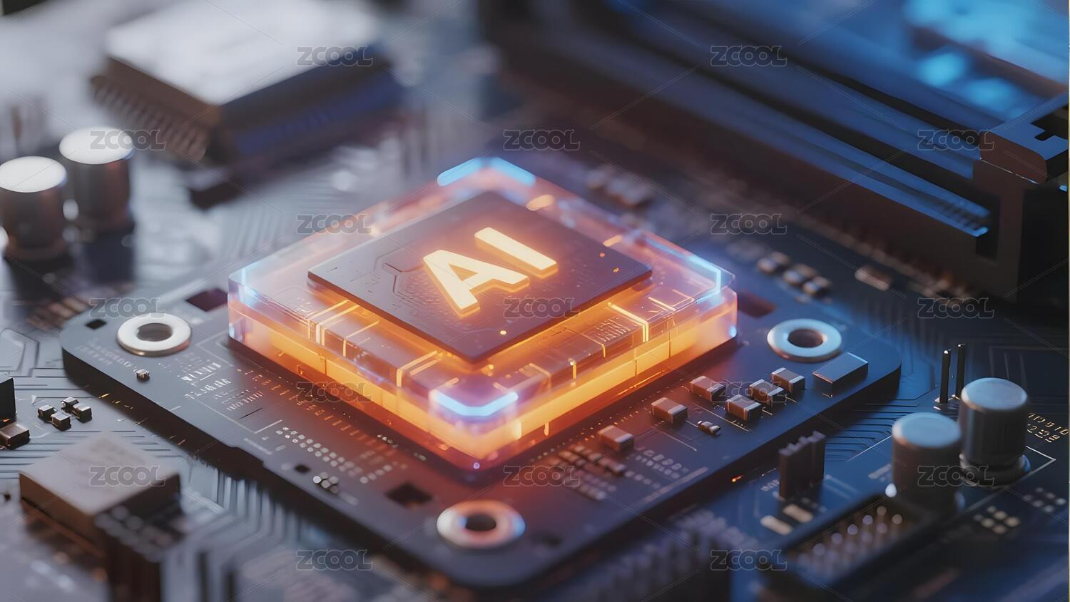 蓝色芯片与AI字样