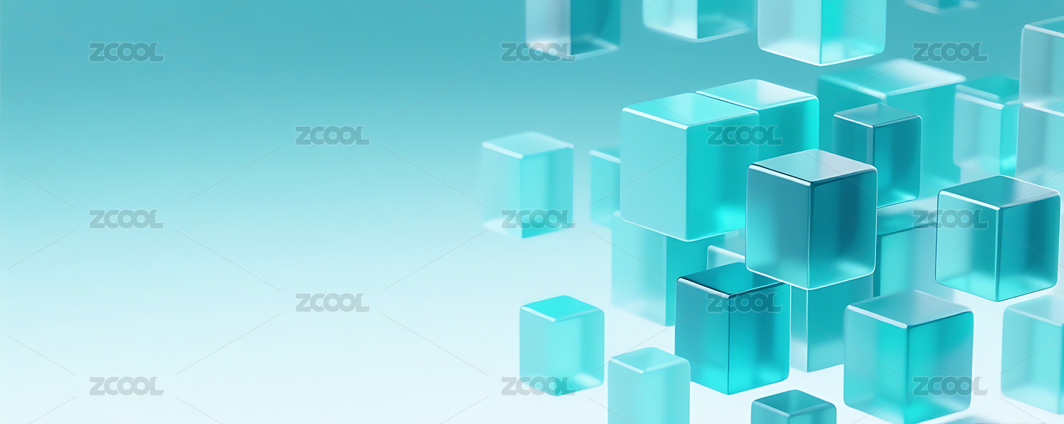蓝绿色商务科技3D玻璃几何方块群背景