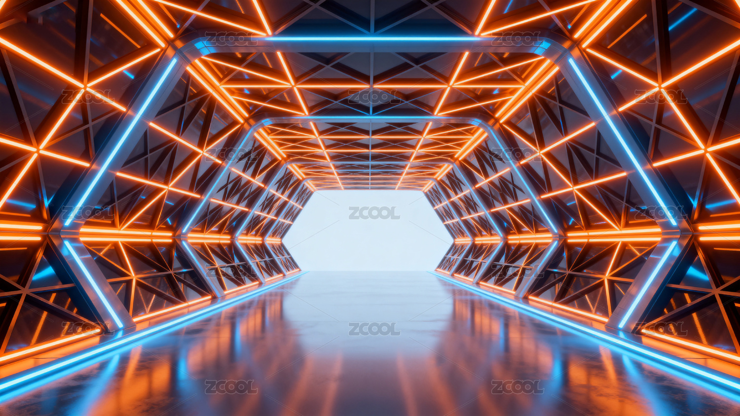 未来感科技走廊光影效果