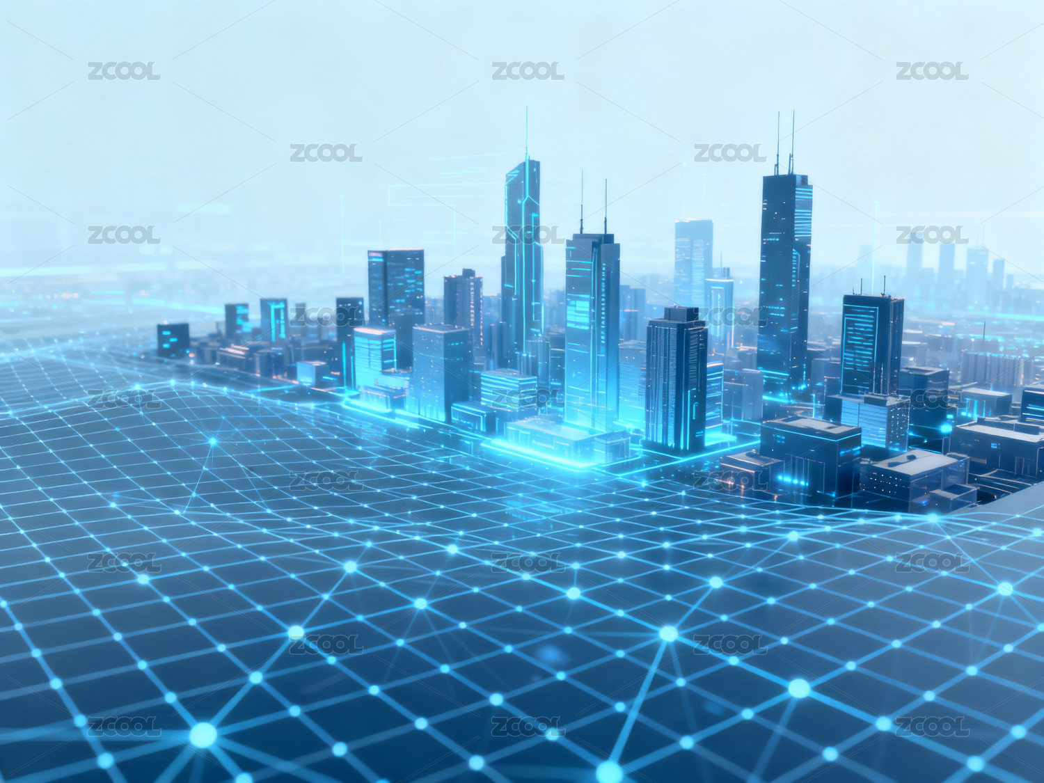 城市天际线和网络科技概念