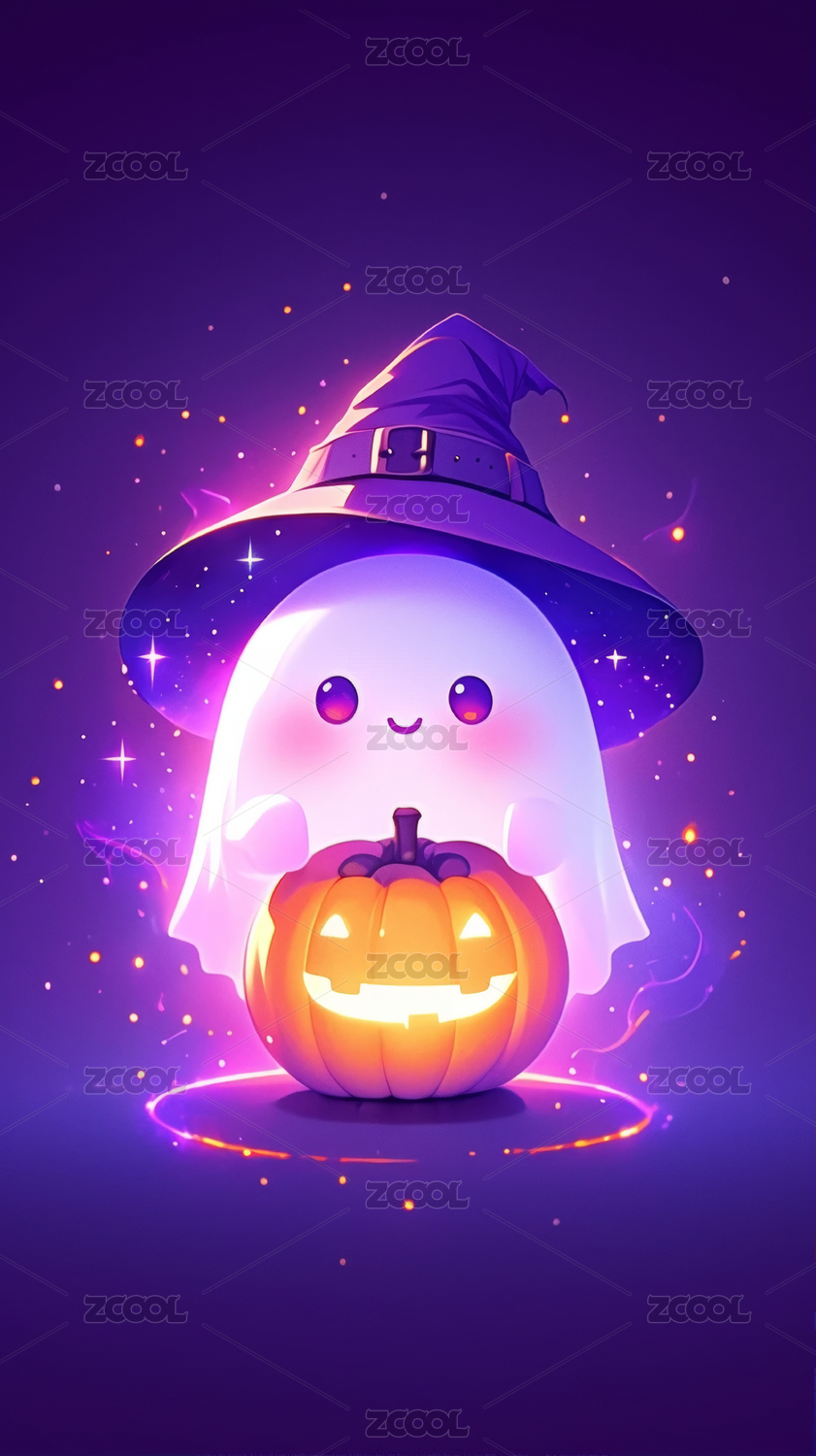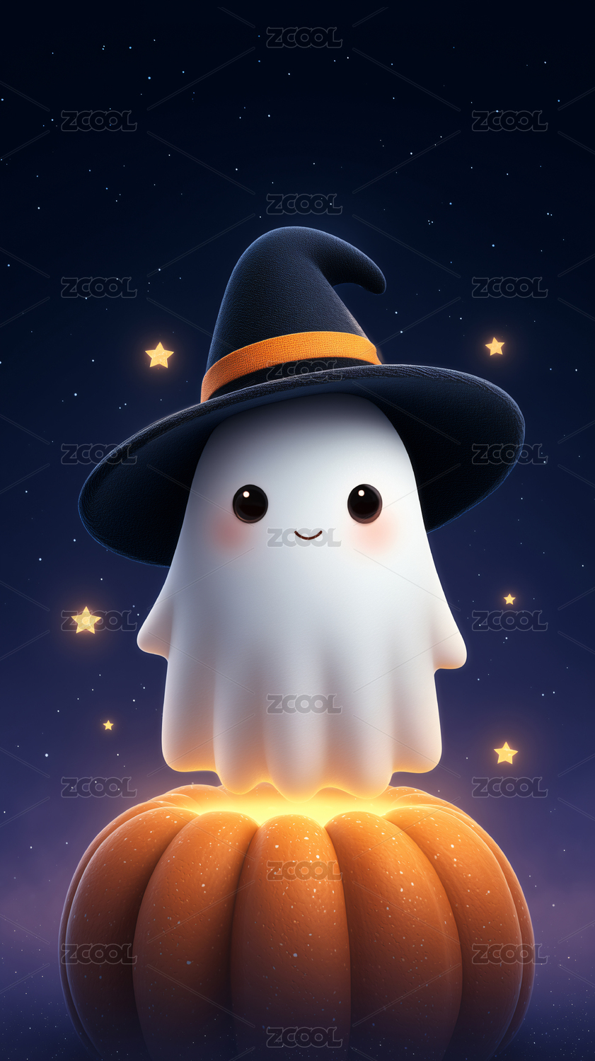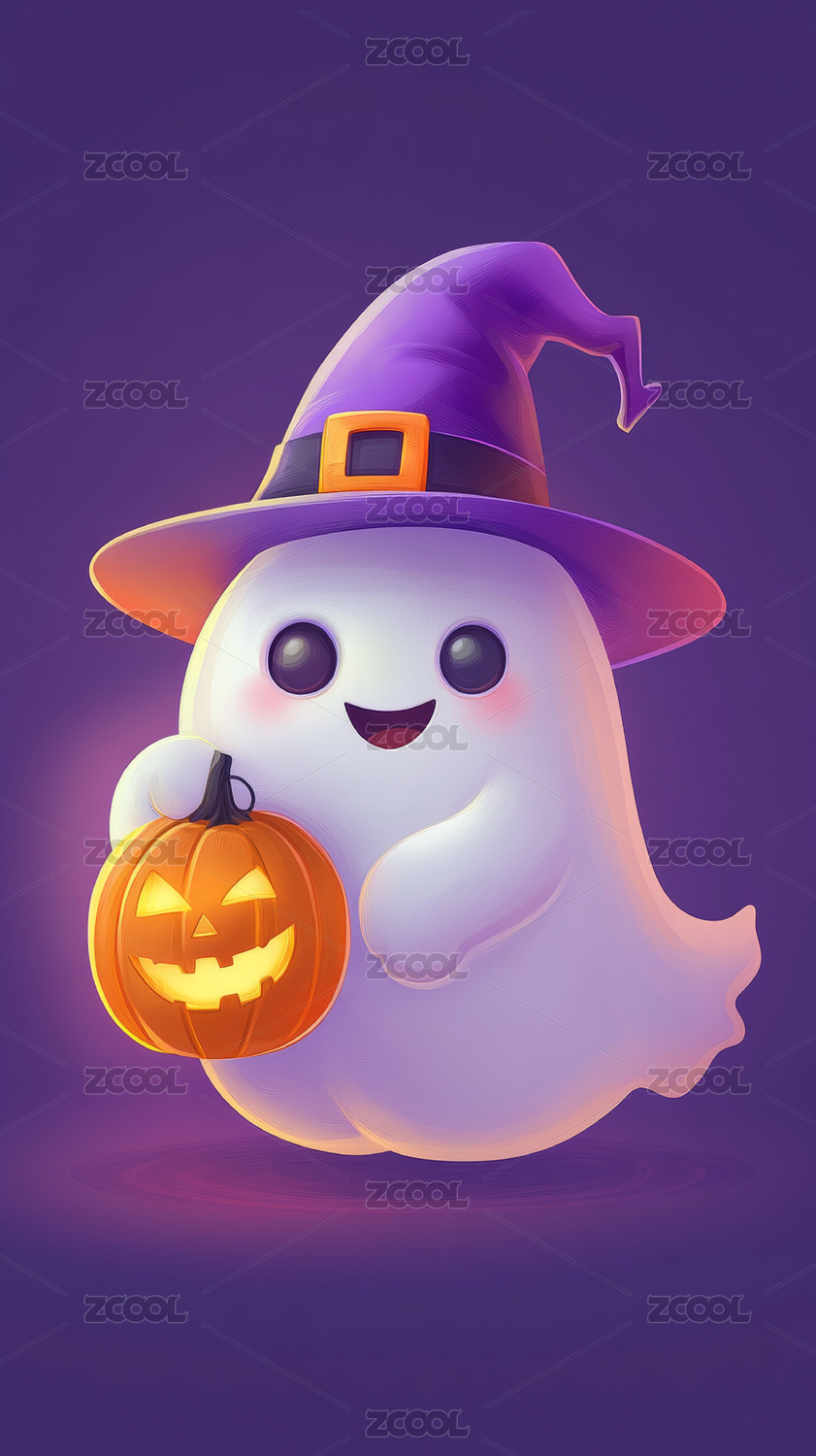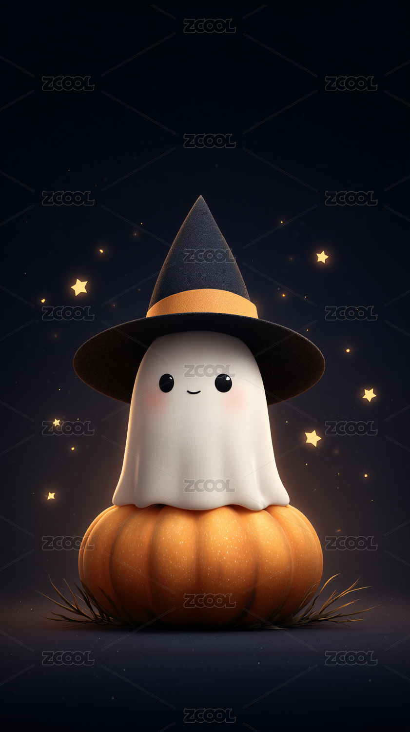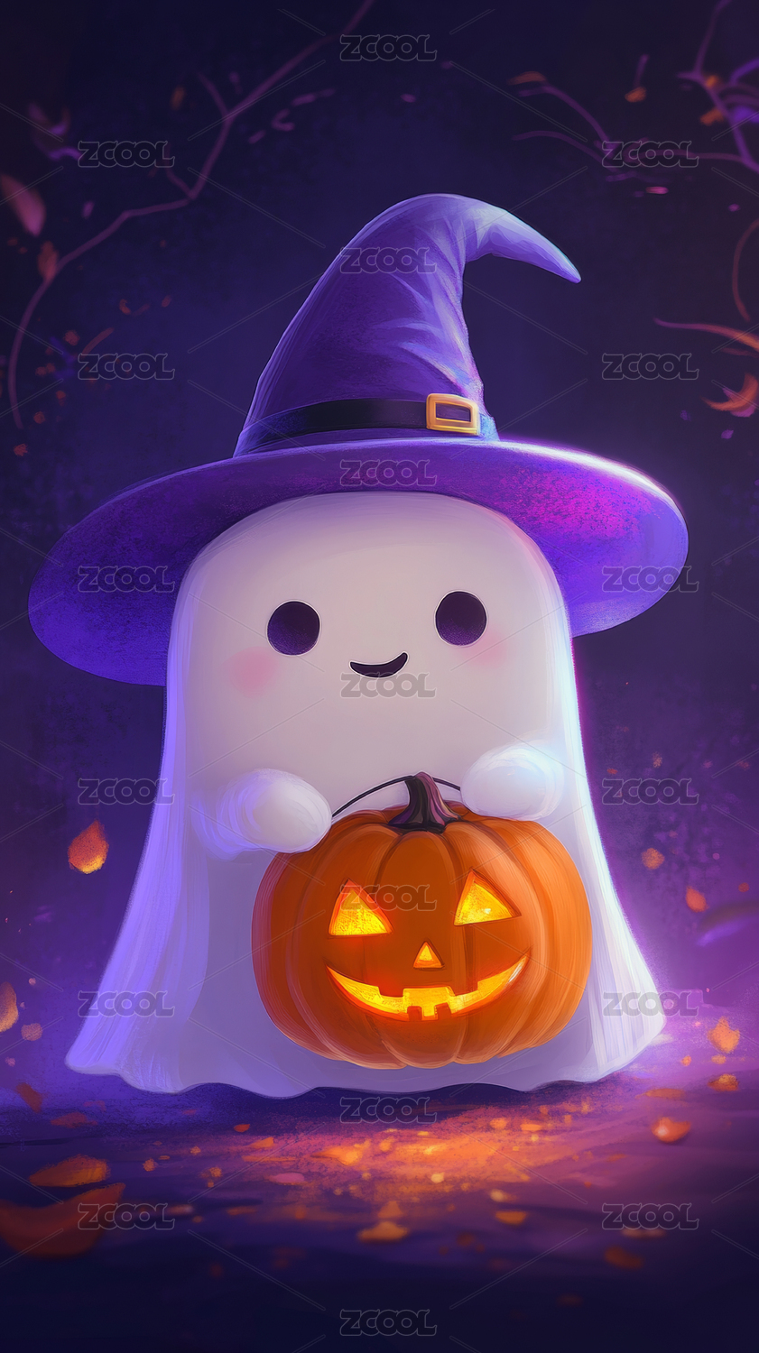 可爱幽灵巫帽抱南瓜庆祝万圣节