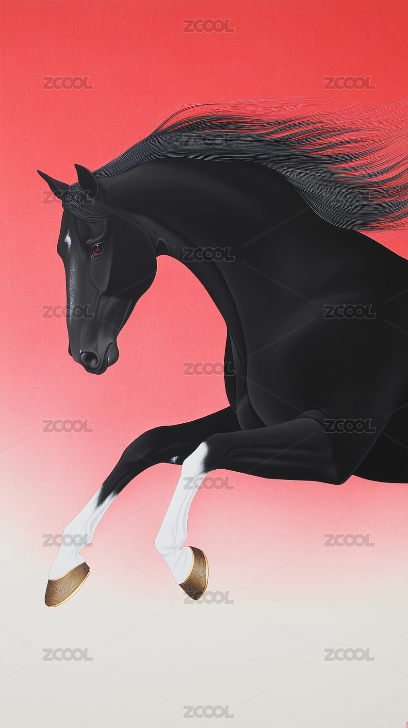 马,动物,马年,花,植物,插画,节日,奔跑,飞奔,中国风