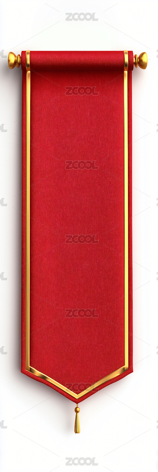 3D红色空白卷轴插画