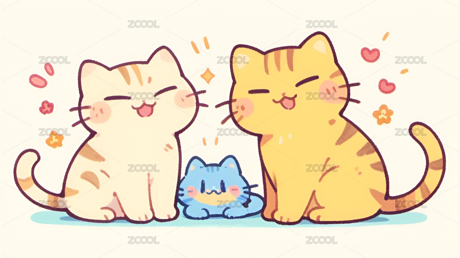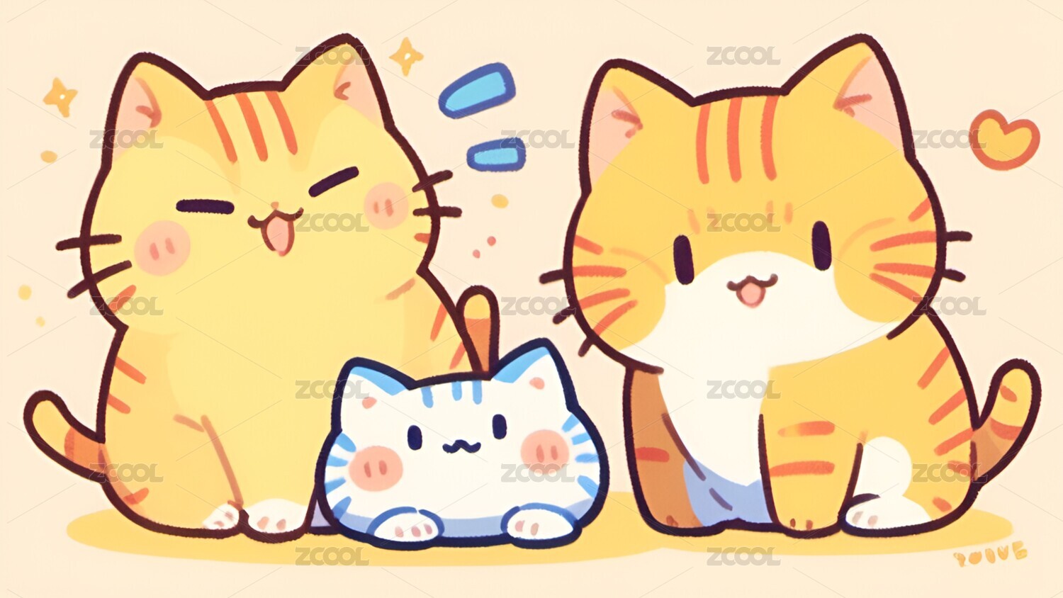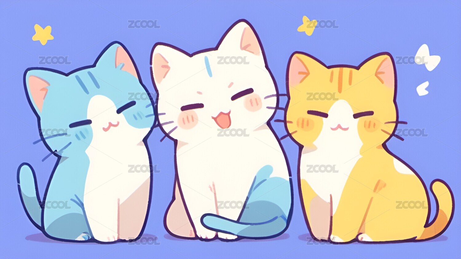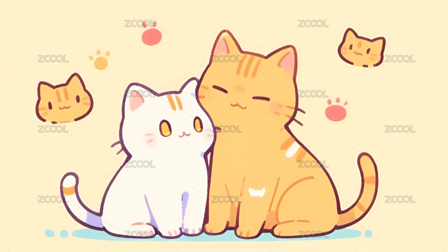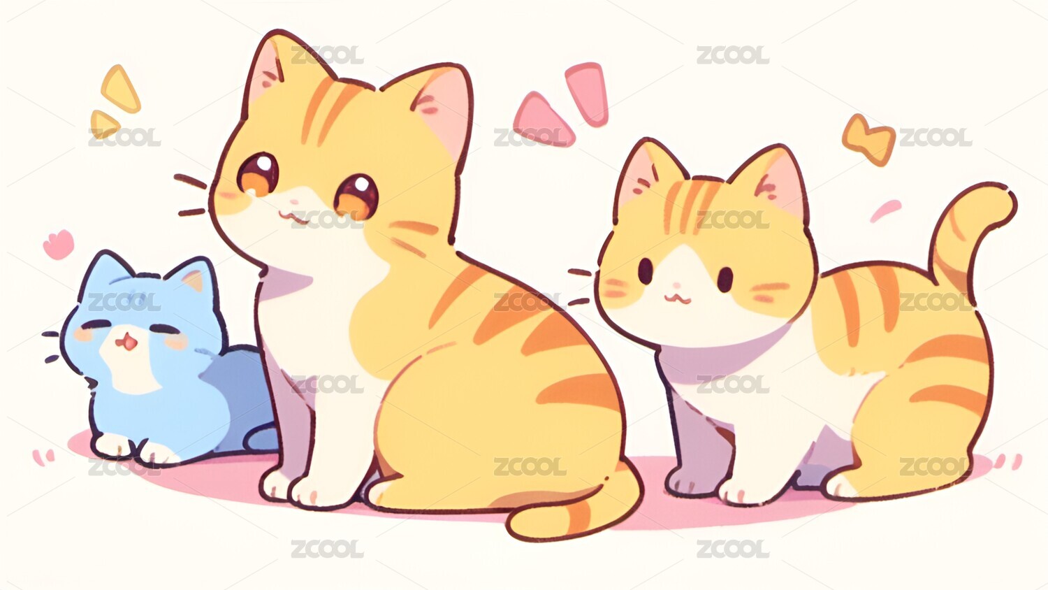 卡通,动漫,小猫,猫,可爱,治愈,壁纸,插画,漫画,宠物