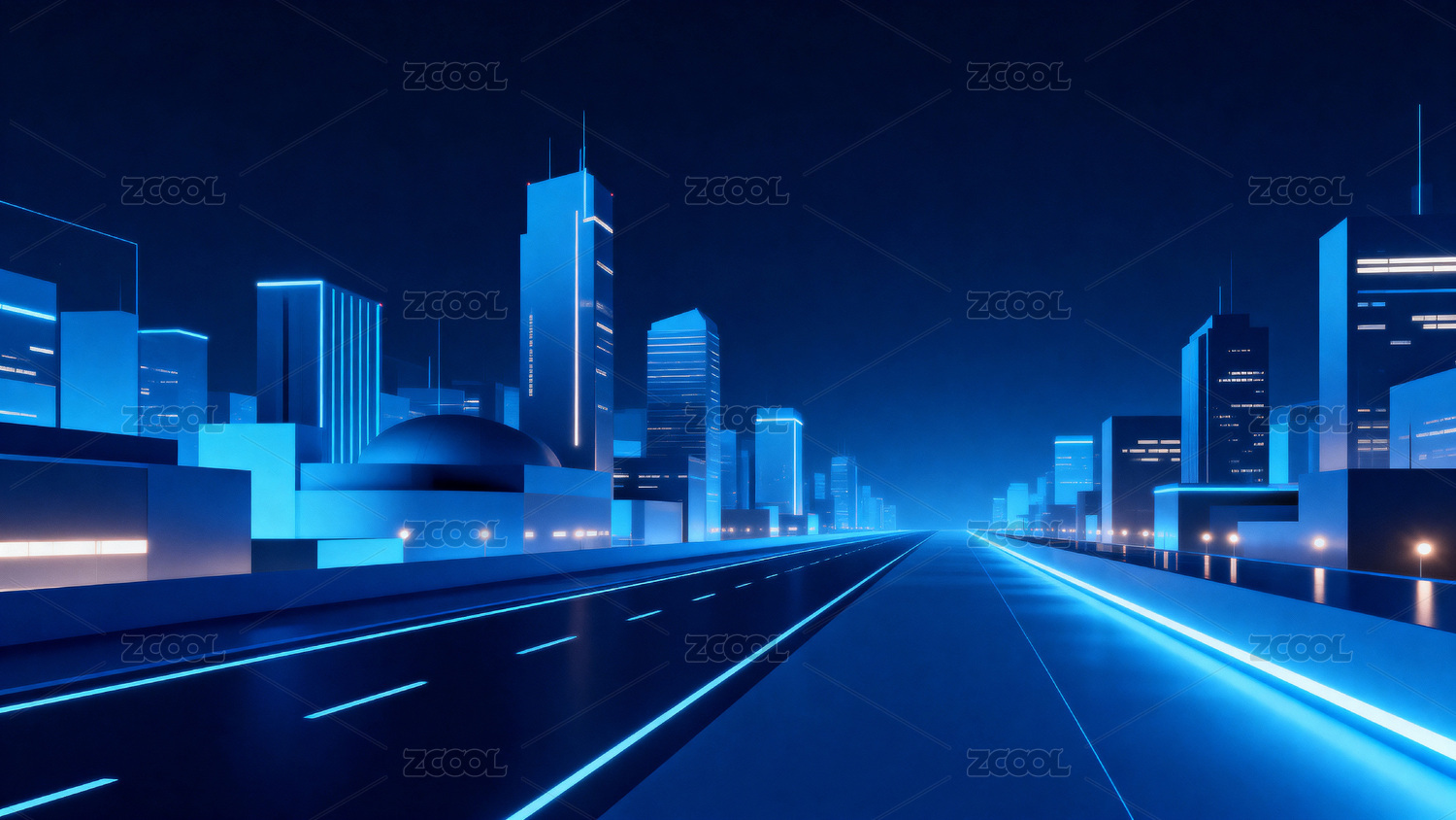 蓝色商务科技未来感光效汇聚城市建筑主视觉